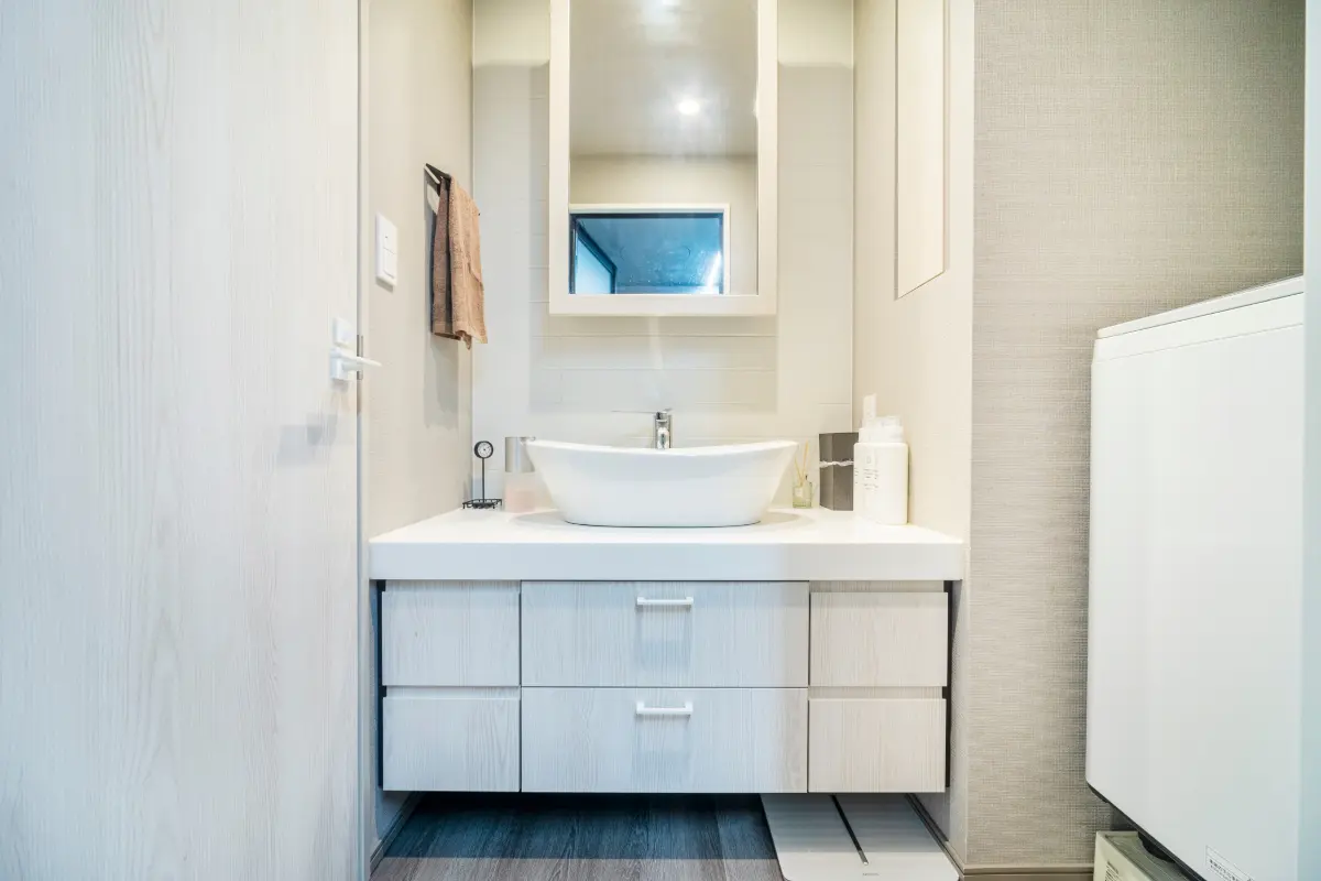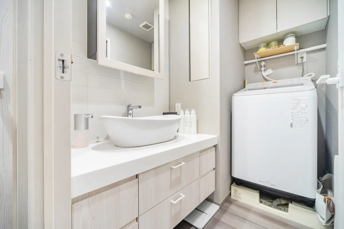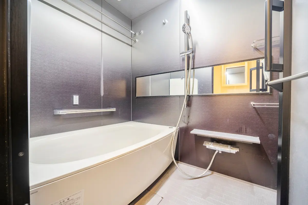 浴室は購入時のオプションにより、黒を基調としたシックで高級感のあるデザインへと変更されており、