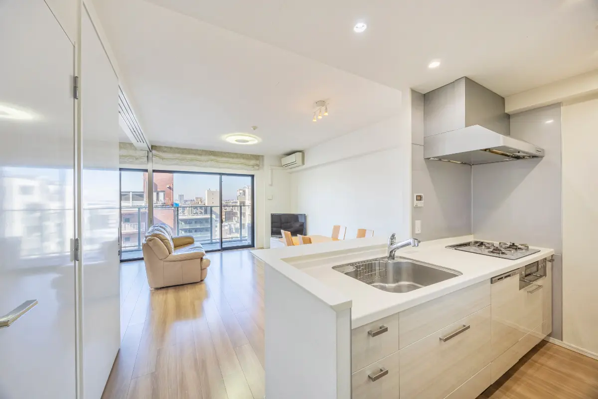 浄水器付きシャワー水栓/大型静音シンク/人造大理石天板/食器洗乾燥機/3口ガラストップコンロ/ディスポーザー