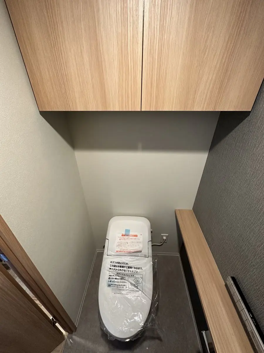 温水洗浄機能付便座、手洗いカウンター、吊戸棚