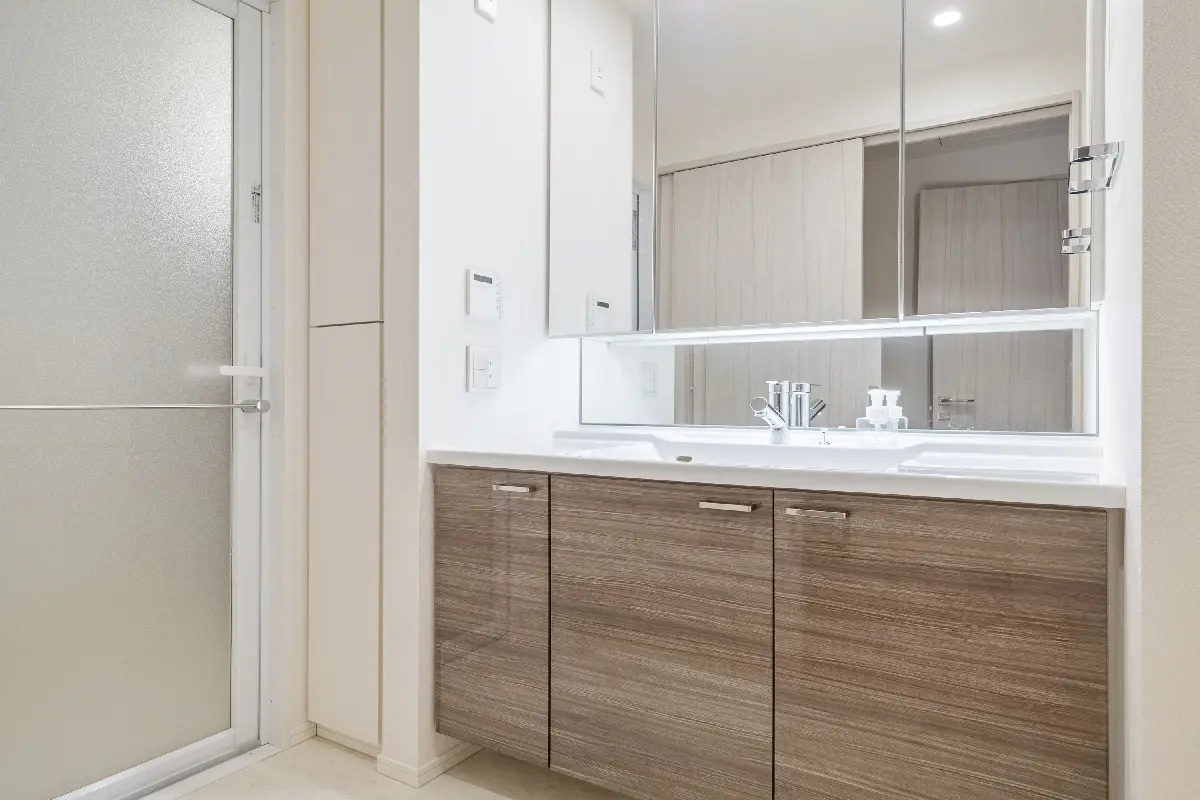 ▼洗面化粧台(鏡裏収納付三面鏡)
