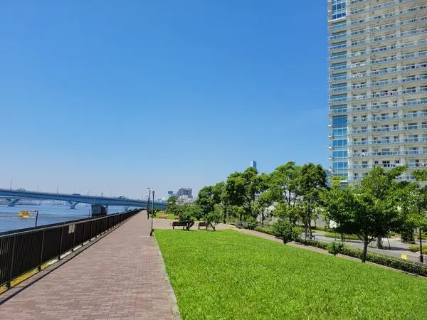 本物件は晴海運河まで約280mに立地し、中央区という都心ながらも水辺と自然を体感できる