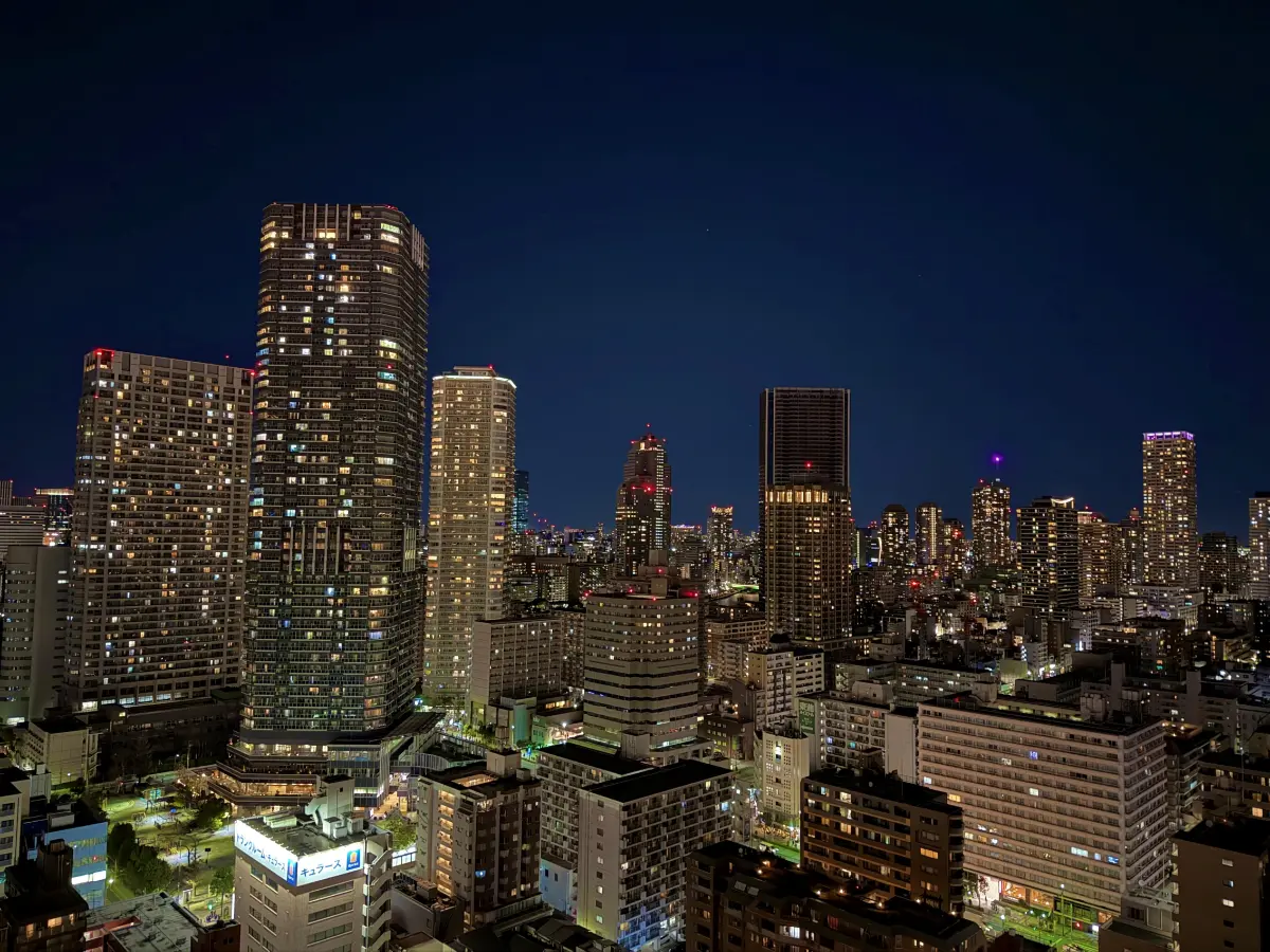 月島・佃・勝どき駅前から、聖路加タワー方面の眺望を昼夜問わず、