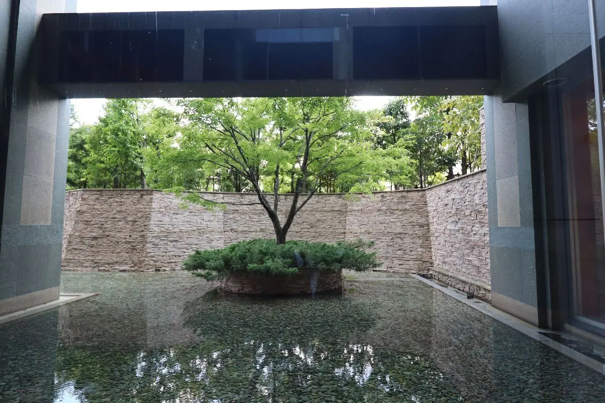3面に設けた大きな開口部からは庭園に配された緑も眺める事が出来ます。