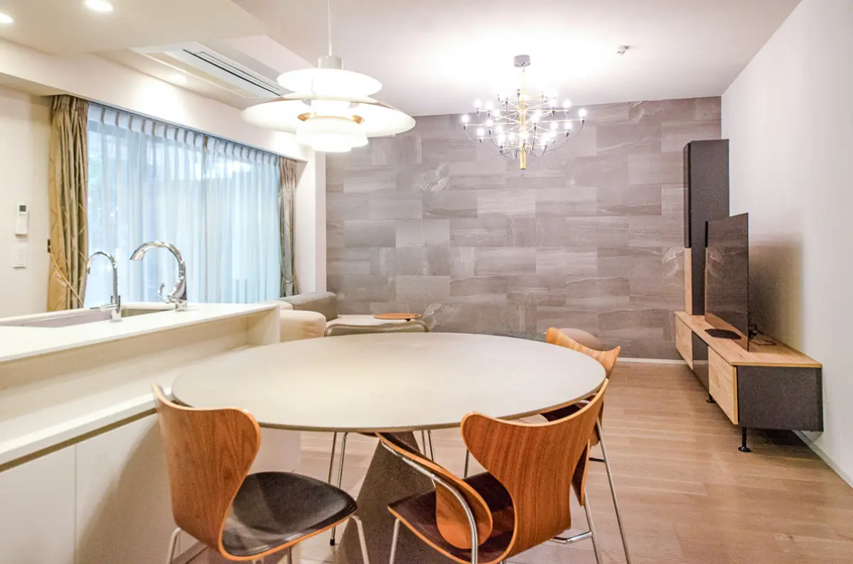ラウンジにはシックなデザインの家具が設えられ、高級ホテルのような寛ぎの空間になっています。