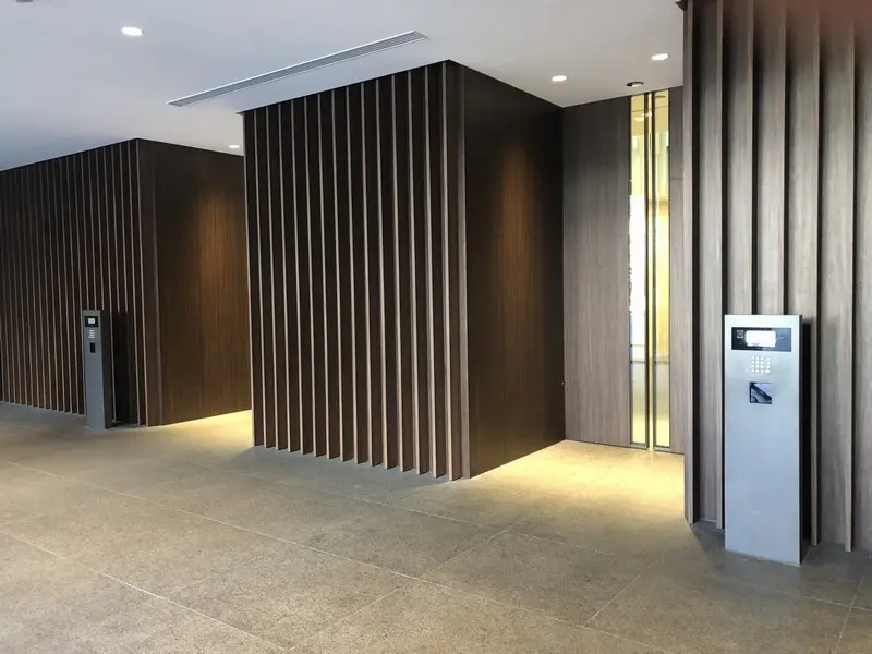 風除室・グランドエントランス・エレベーター内・住戸玄関の四カ所にセキュリティラインを設置することで、高いセキュリティ計画を実施。