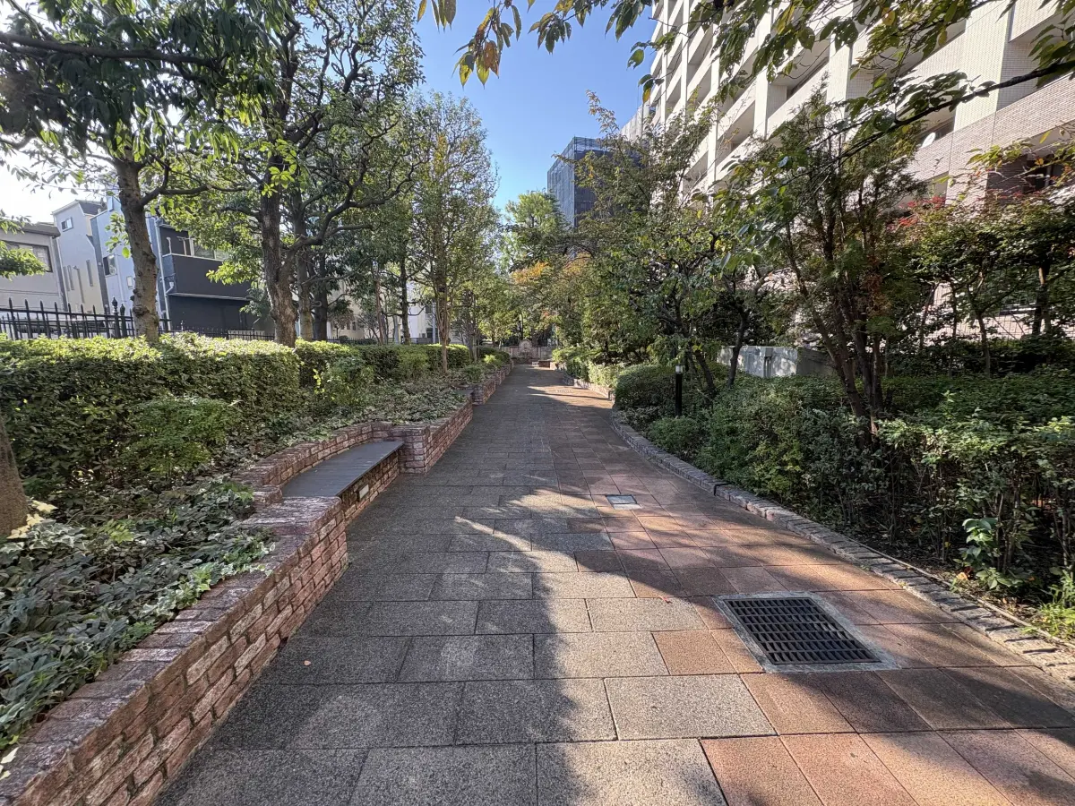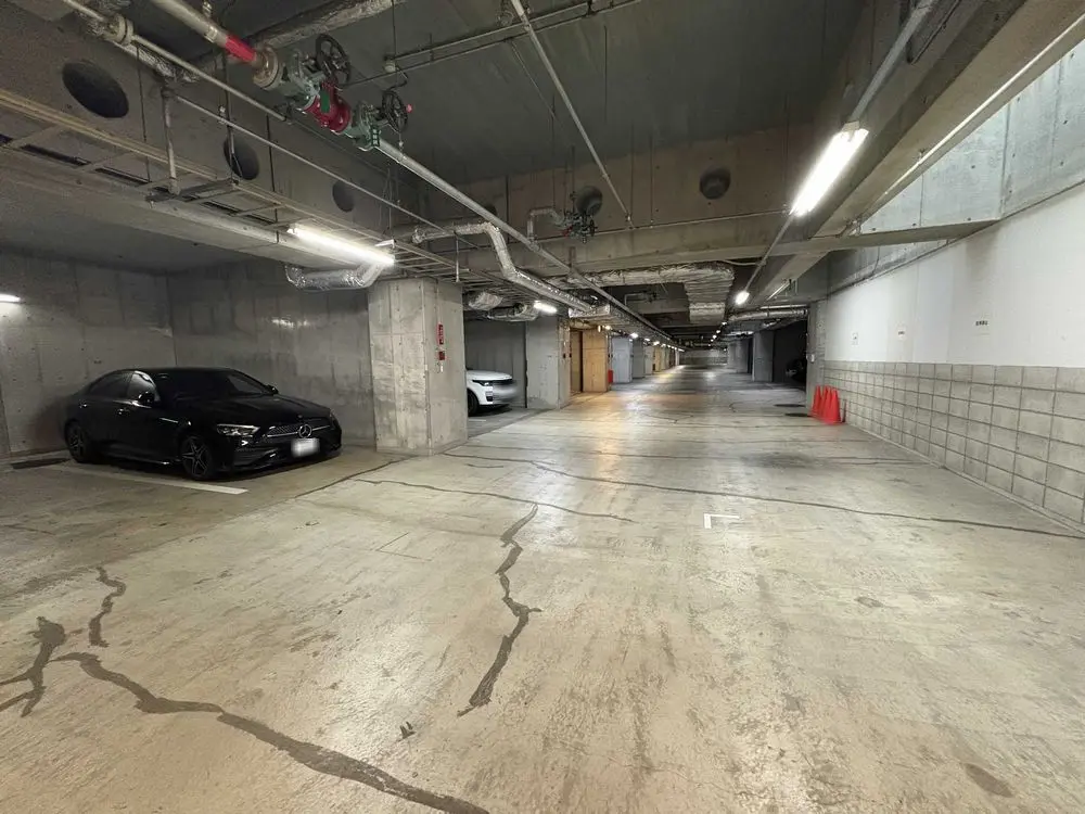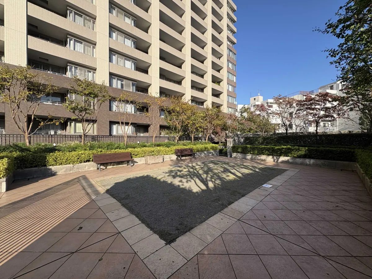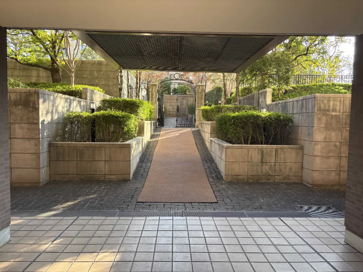 敷地内には104台分の地下駐車場スペースがあり、雨の日の車の乗り降りに便利です。 また敷地南側には、ヨーロッパの落ち着いた庭園のような敷地内緑地を配しており、南側バルコニーから眼前に広がる低層住宅街と調和しています。