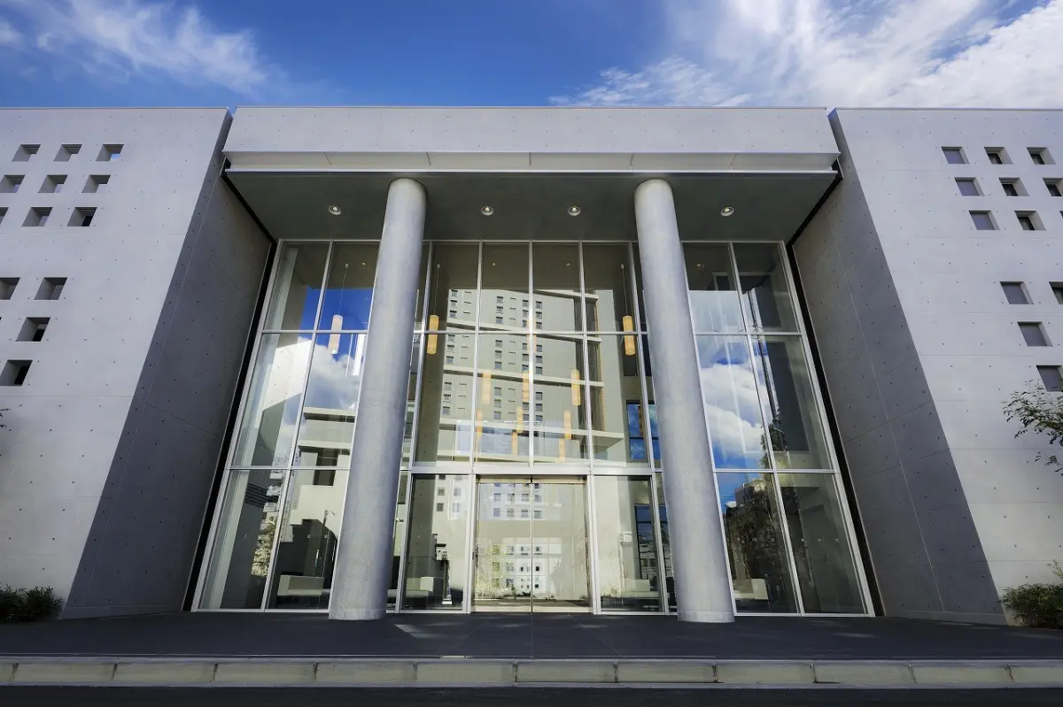 総敷地面積9000u越えの壮大なランドスケープで、3層吹き抜けのエントランスホールとが特徴の建物です。