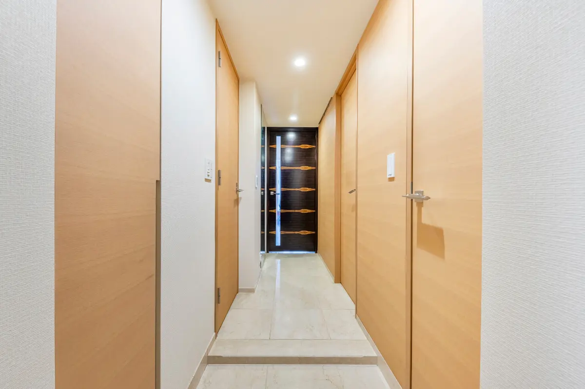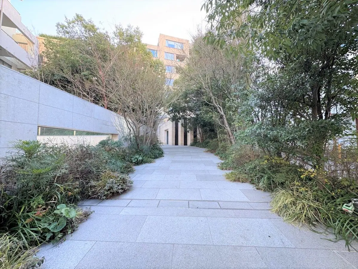 本マンションは、港区赤坂の中でも落ち着いた住環境が広がる“氷川エリア”に佇む、2013年2月築、地上10階建・総戸数135戸のレジデンスです。建物へと続くアプローチは、豊かな植栽に囲まれたゆとりある空間設計となっており、都心にいながらも落ち着きと品格を感じさせる佇まいです。緩やかなアプローチを進むことで、日常からプライベート空間へと自然に切り替わる演出がなされています。