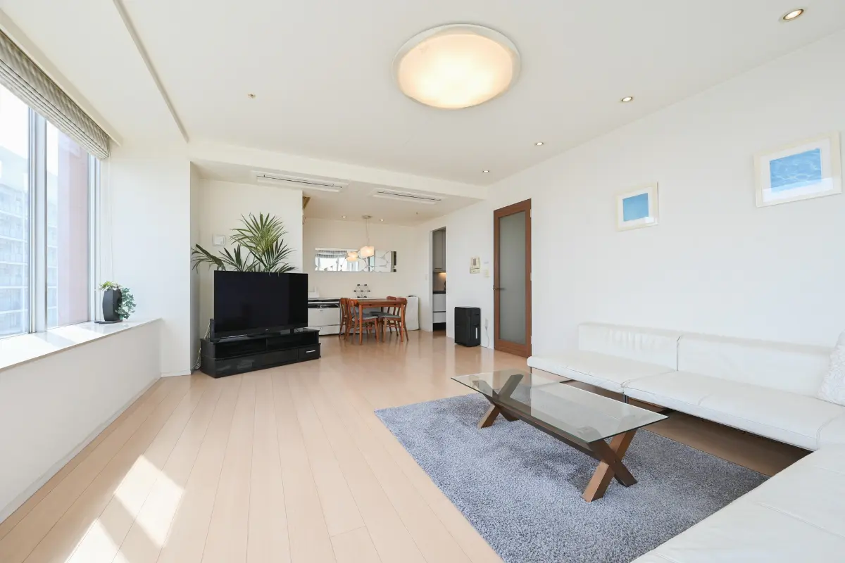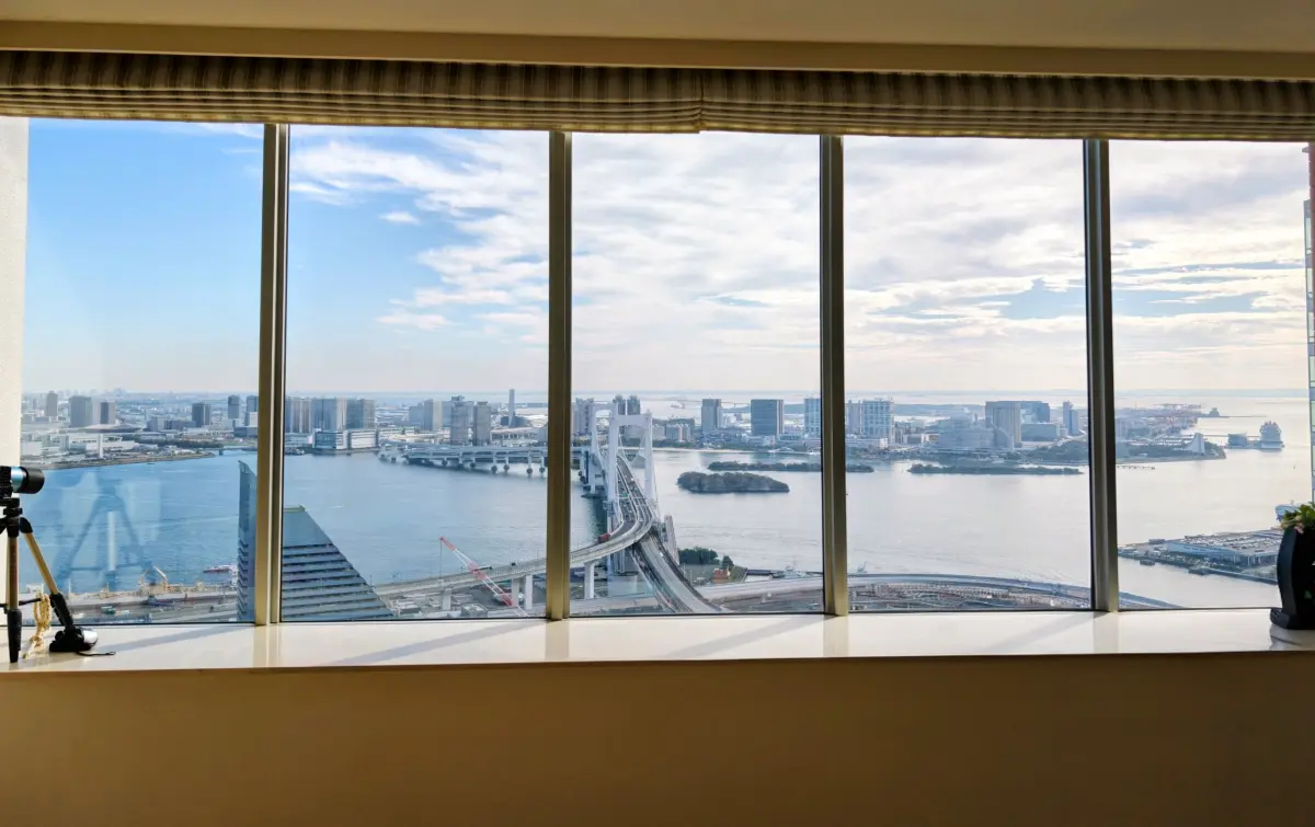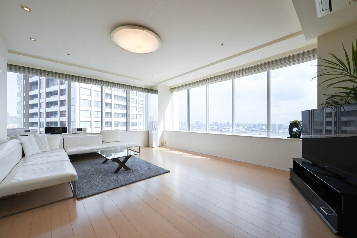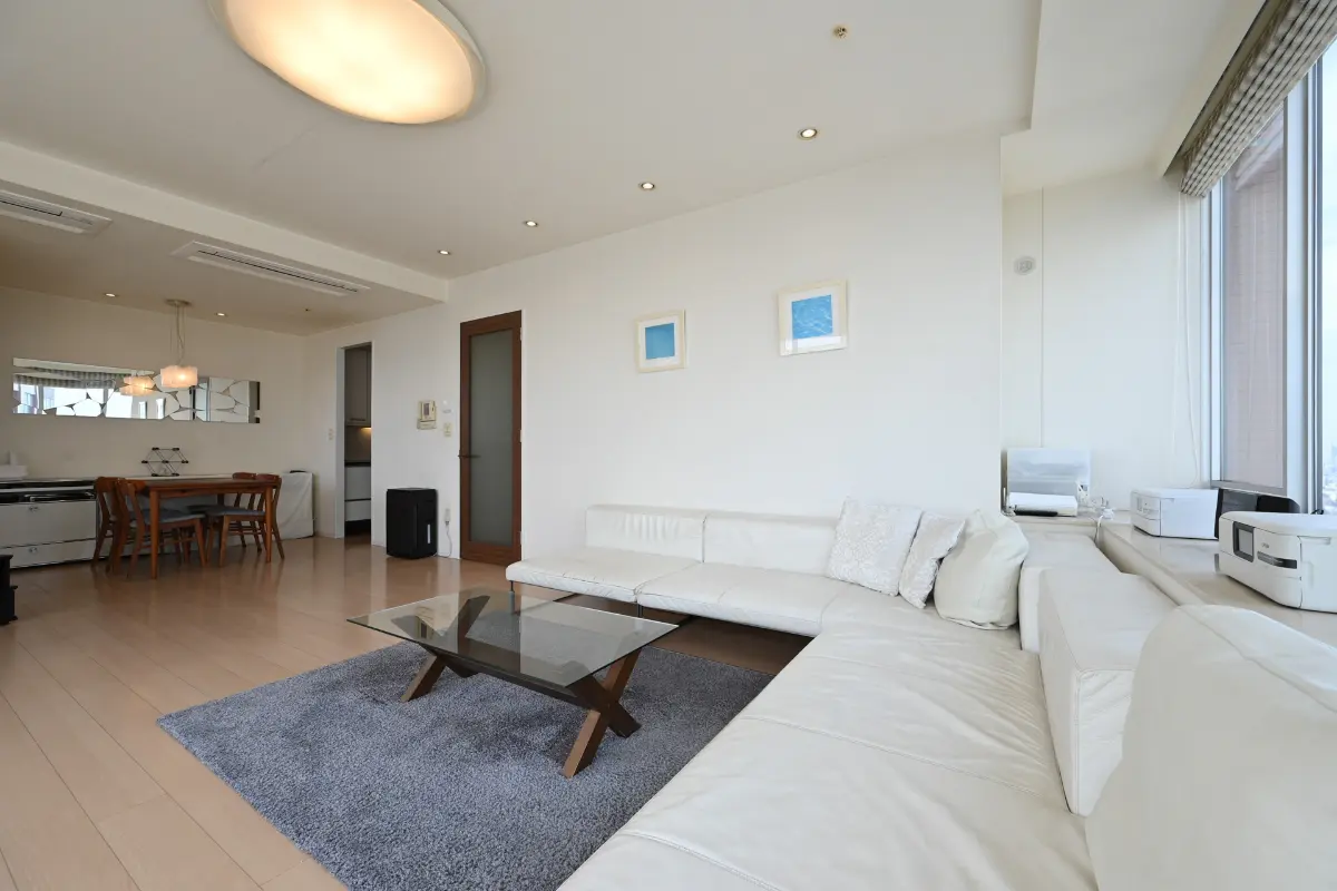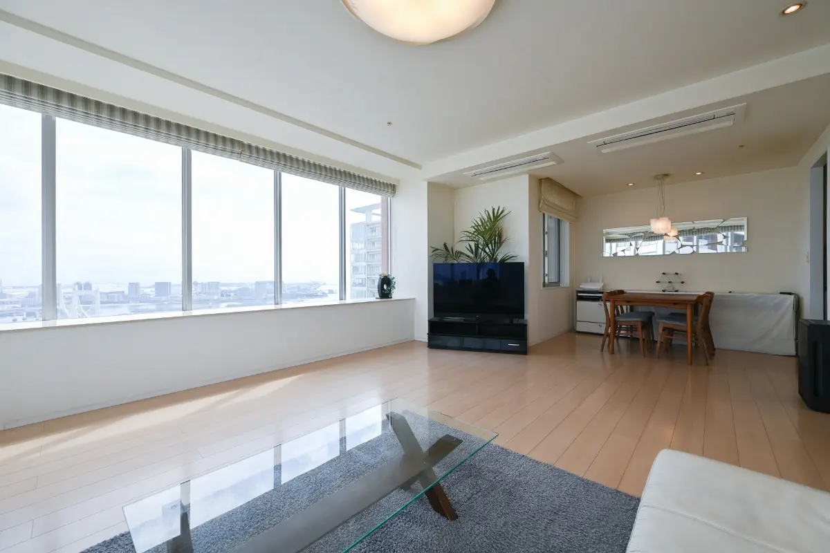 本物件は45階部分、角部屋でリビングダイニングに居ながらレインボーブリッジやお台場を望むことができます。