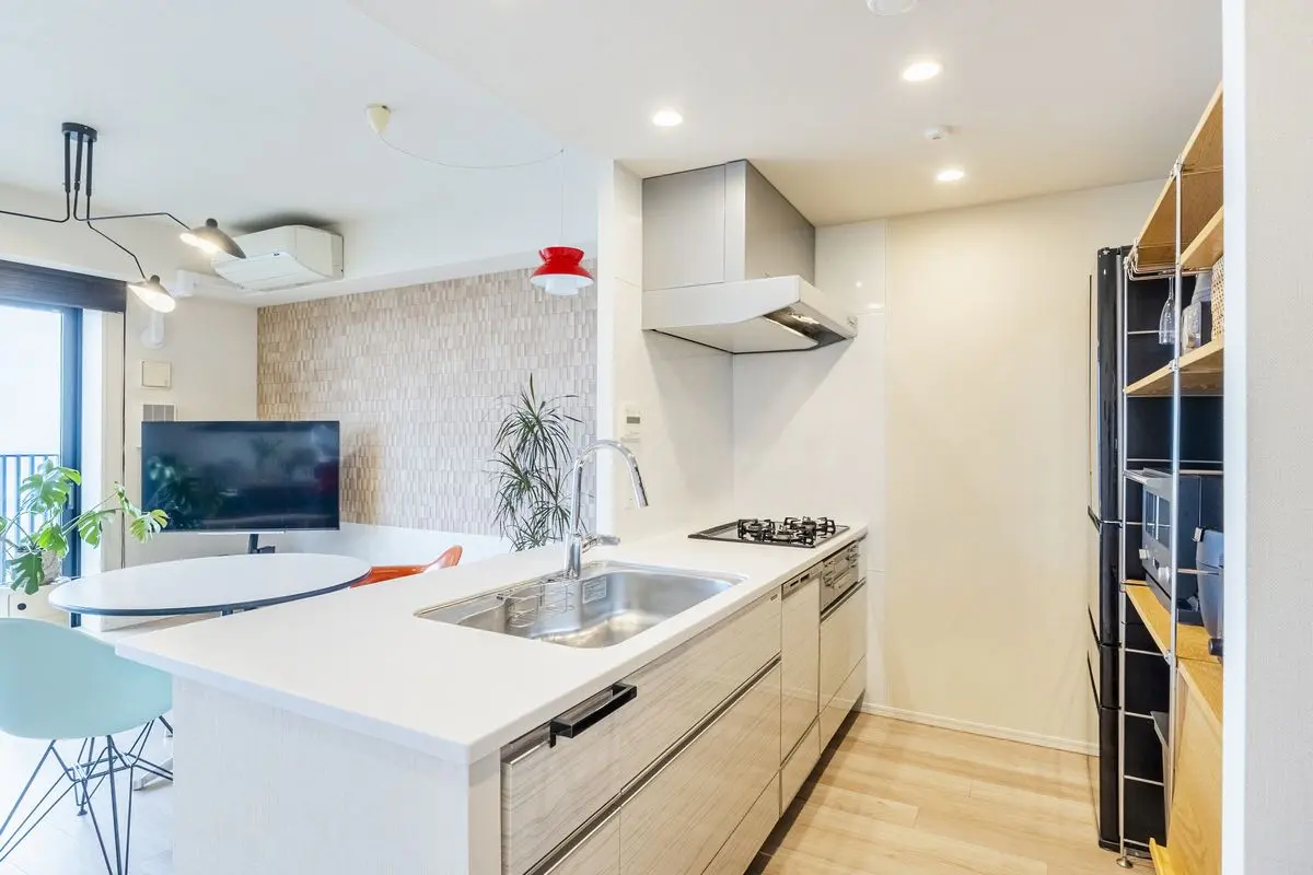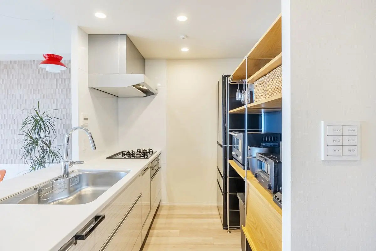 本物件は、バルコニーを東側に設けた通風、採光に優れた明るい住戸となっており、キッチンはリビングとの一体感が高いオープンタイプのキッチンを採用した家族団欒に相応しい空間です。