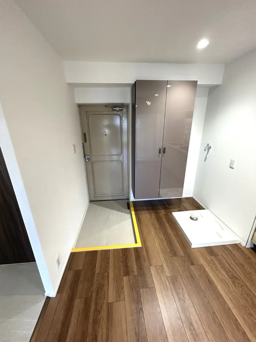 全建具交換、エアコン新規設置、下足入交換、防水パン交換