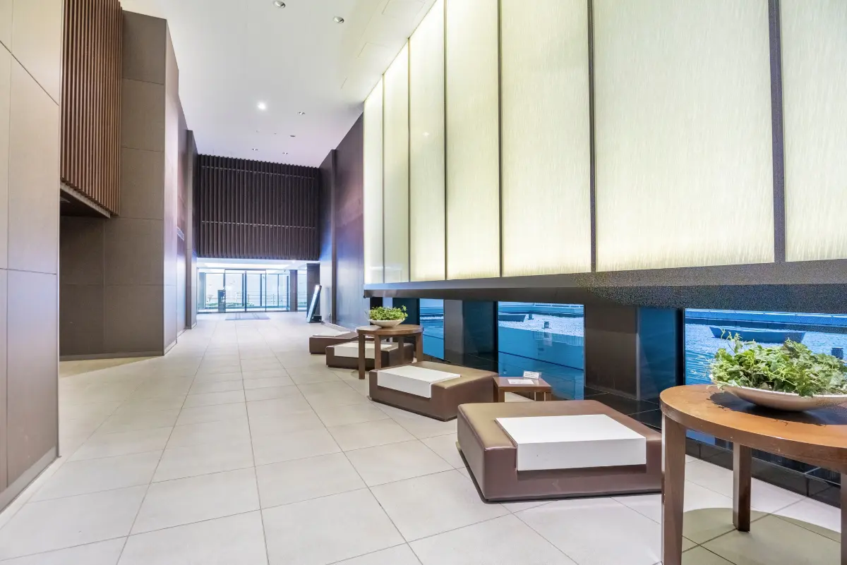 シティタワー金町タワー棟1階に設けられた230uのエントランスホールは、2層吹抜けとなっており、コンシェルジュカウンターも設けられた開放的でホテルライクな空間となっています。