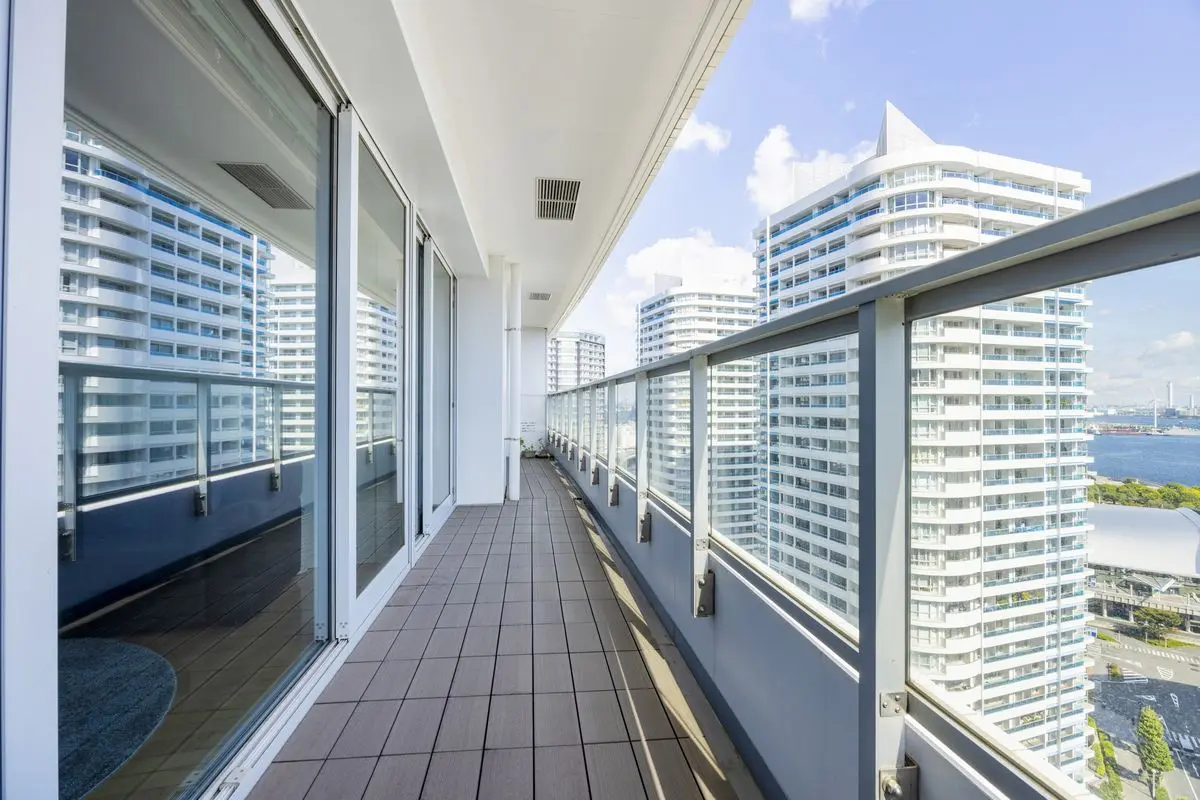 お部屋は21階東向き住戸で、ワイドスパンになっており、リビングダイニングからの眺望はもちろんのこと、各部屋から海が望める解放感のあるお部屋となっております。
