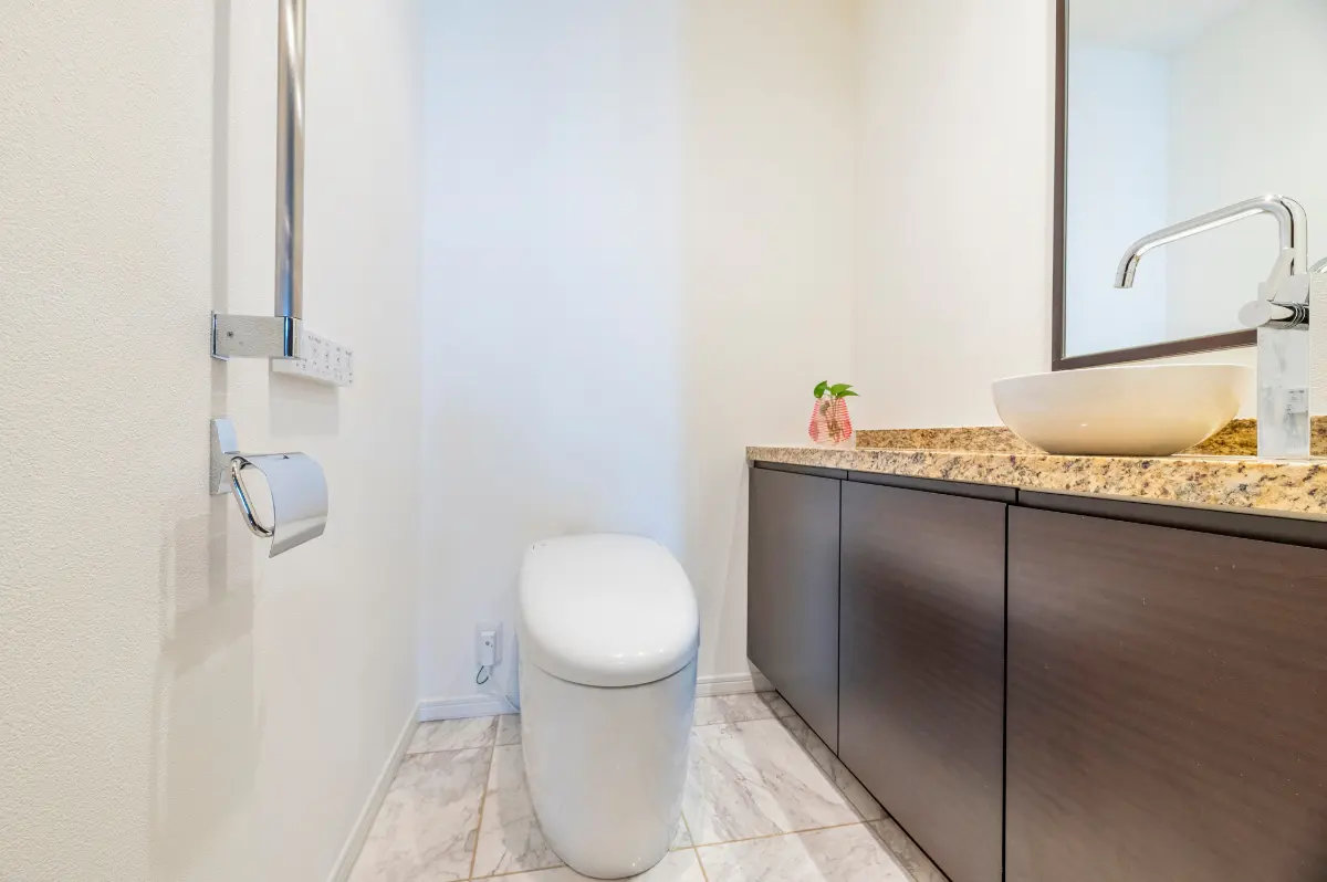 ▼温水洗浄機能付暖房便座・手洗いカウンター付トイレ