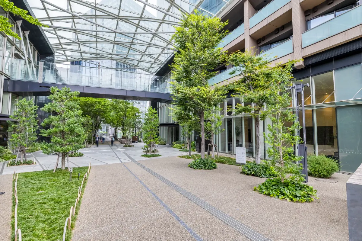 エントランス周辺はアトリウムプラザの自然な緑ゾーンが広がっており、爽快な雰囲気が感じられます。2棟それぞれにラウンジとコンシェルジュカウンターを配備、吹き抜けのエントランスホールは隅々まで上品さが漂う造りとなっています。