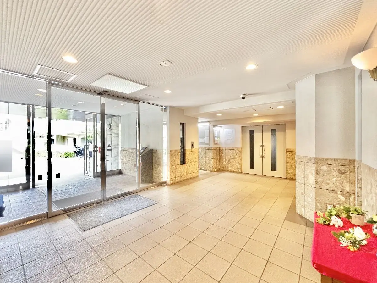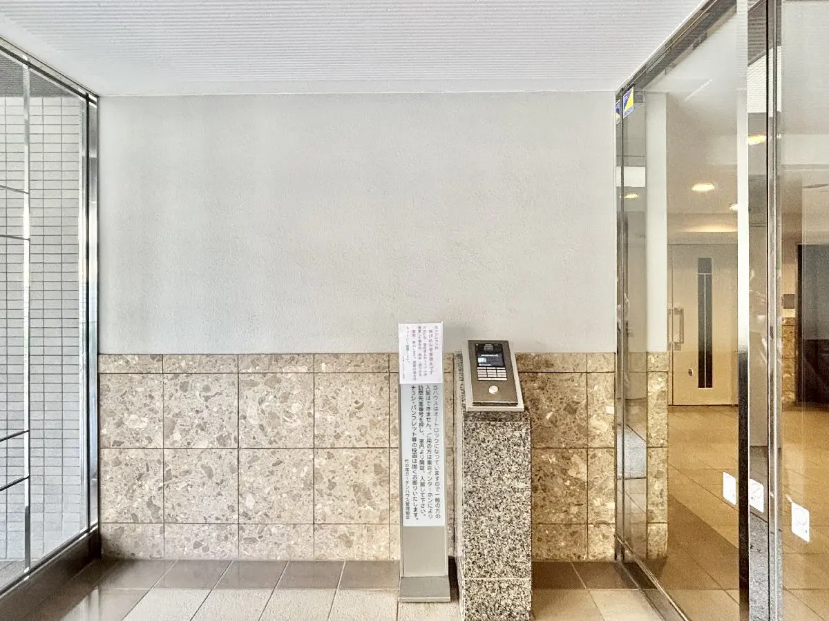 写真をご覧になるとわかる通り、マンション入口からエントランスまでの間に木々が生い茂っており、
