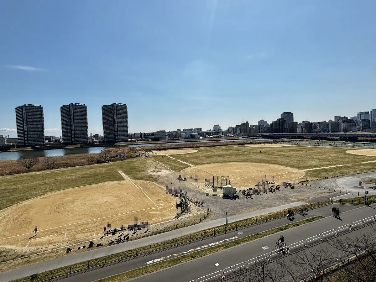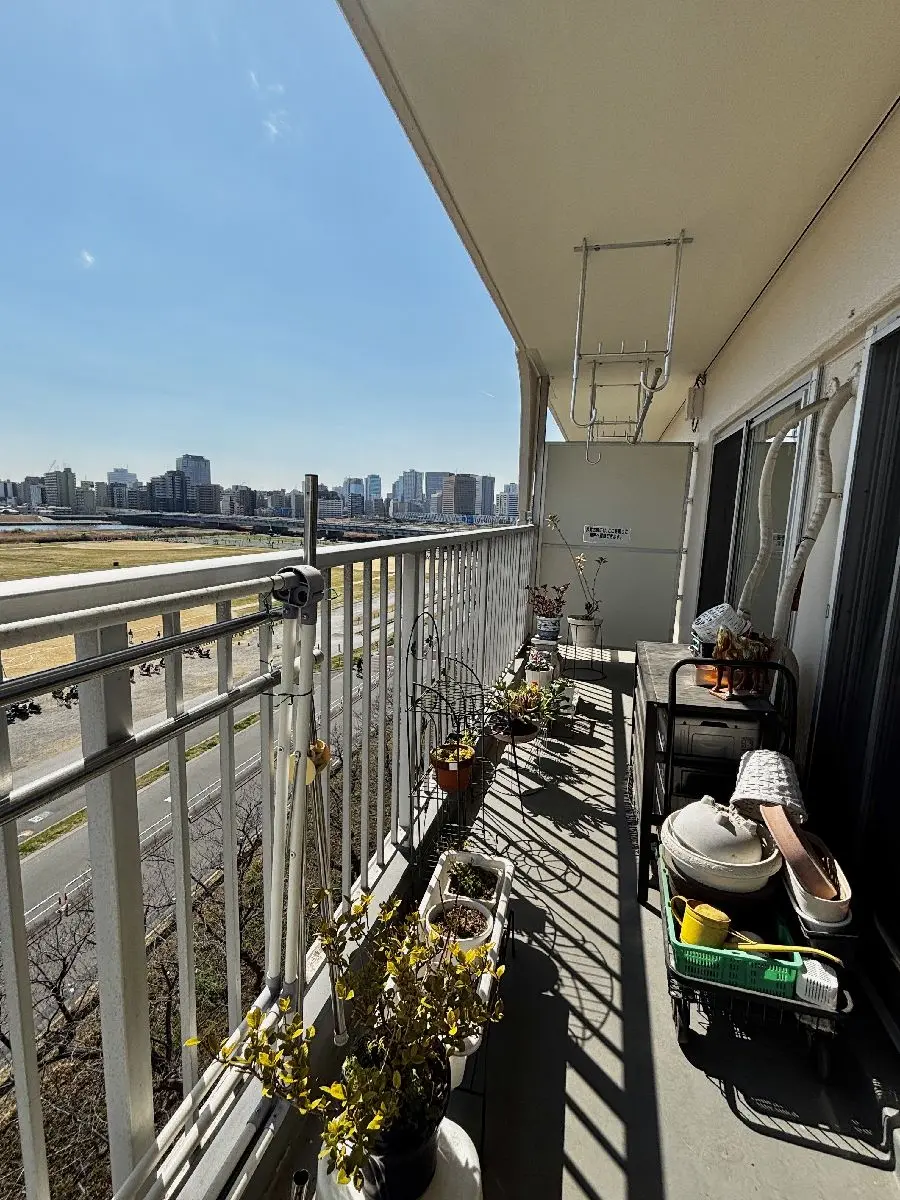 お部屋は7階部分に位置しており、南東向き住戸のため陽当たり良好です。バルコニーは多摩川緑地側に面しており、開放感のある眺望とともに、四季折々の自然を感じながらお過ごしいただけます。通風も良好で、心地よい住環境が広がります。