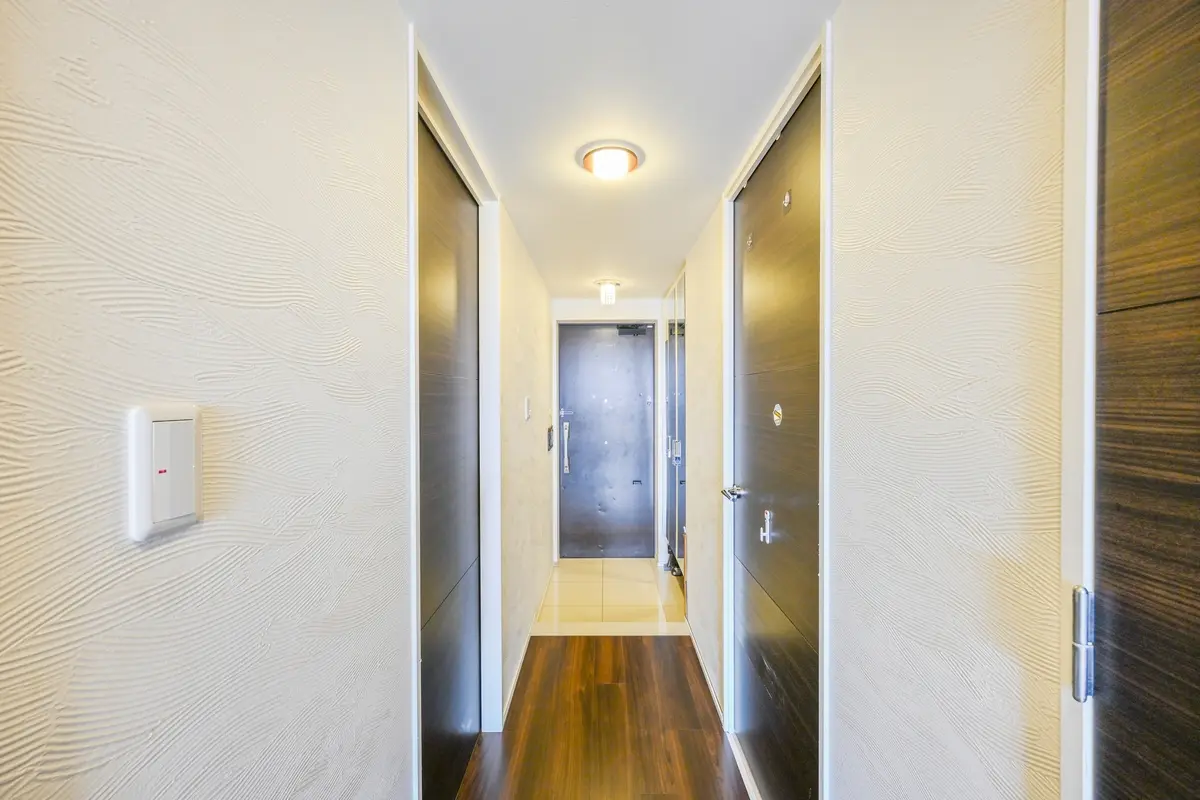 洗練さと穏やかな印象を併せ持つエントランスは、ナチュラルテイストの素材感を活かし、落ち着きのある表情。
