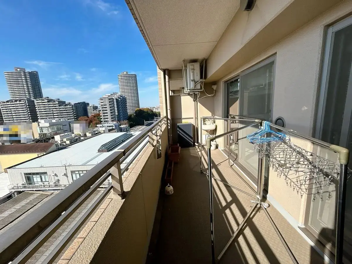 お部屋は9階部分、南西向きバルコニーで、前面に遮蔽物がないため、開放感があり、陽あたり・眺望・通風良好です。