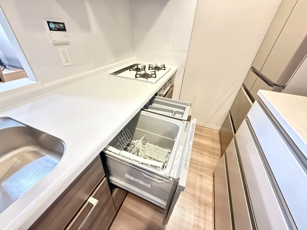 また食洗機付きシステムキッチンのため、衛生的かつ、快適でゆとりある暮らしを実現いただけます。