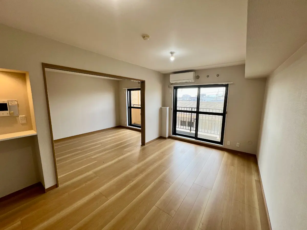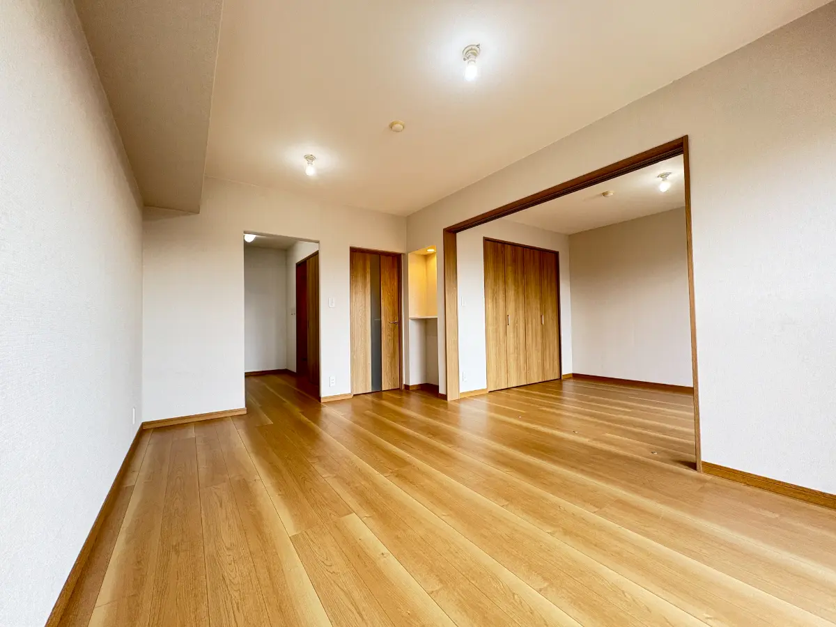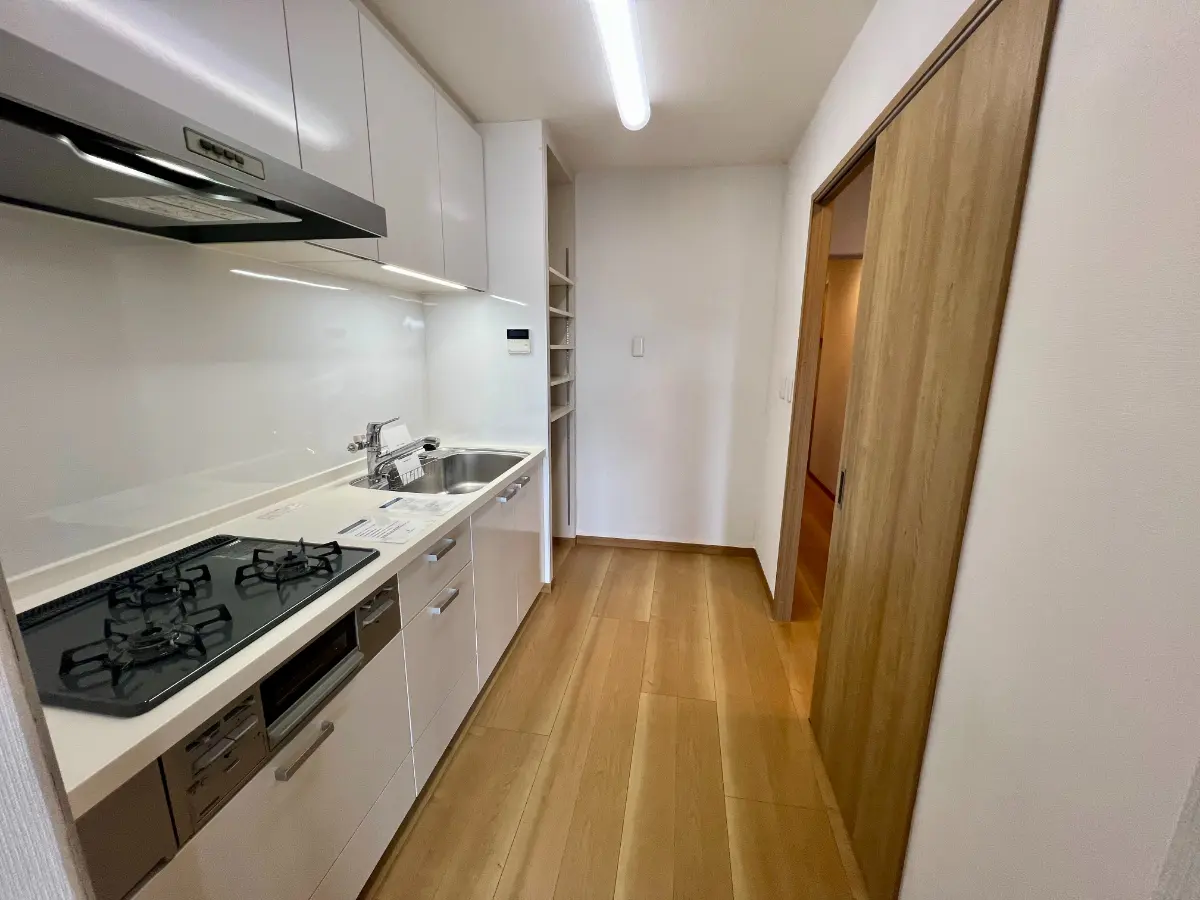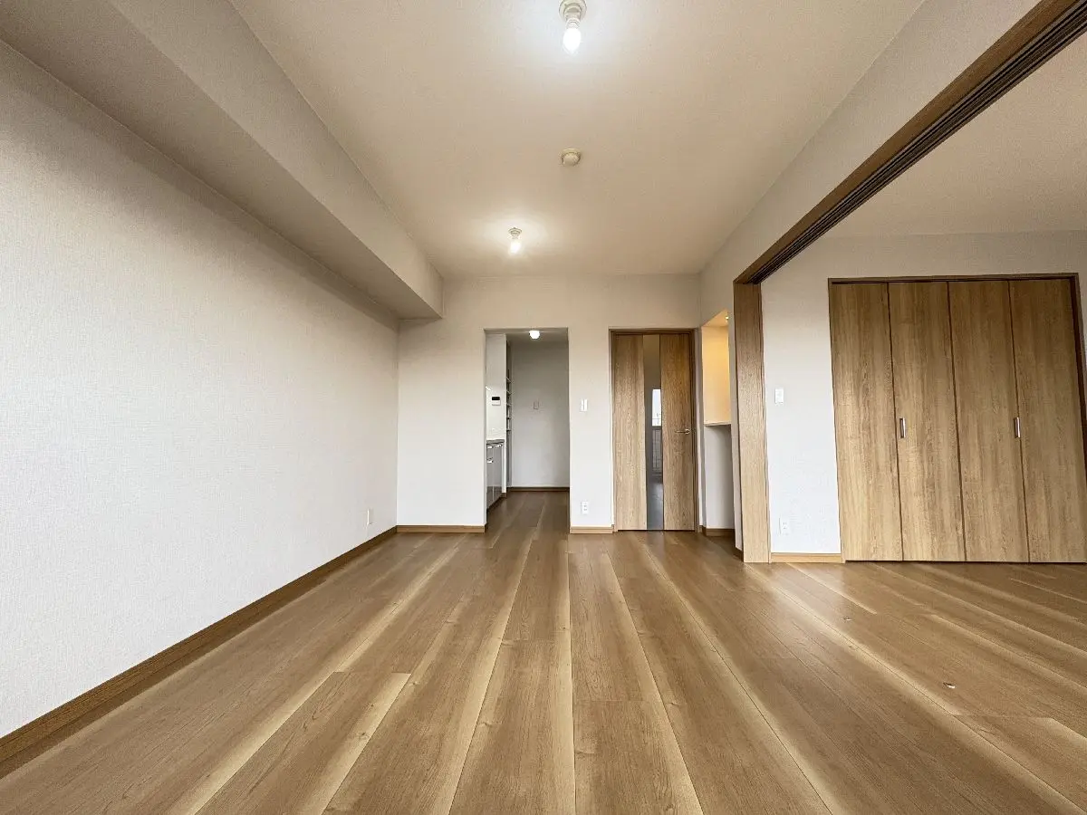 フローリング新規張替、全部屋クロス張替、給湯器交換、全建具新規交換、洗面化粧台新規交換、トイレ新規交換、システムキッチン新規交換、ユニットバス新規交換