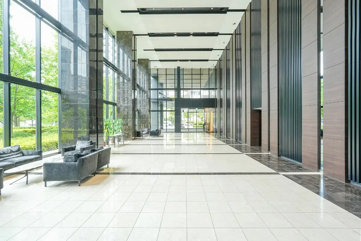 ◇3層吹抜け、天井高約9mの重厚感のあるグランドロビー