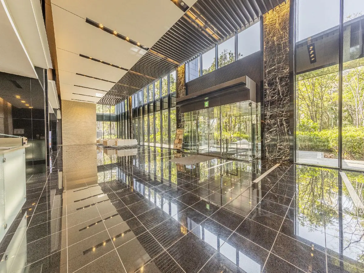 住友不動産旧分譲のガラスウォールが特徴の外観、ホテルライクな内廊下仕様のマンションです。