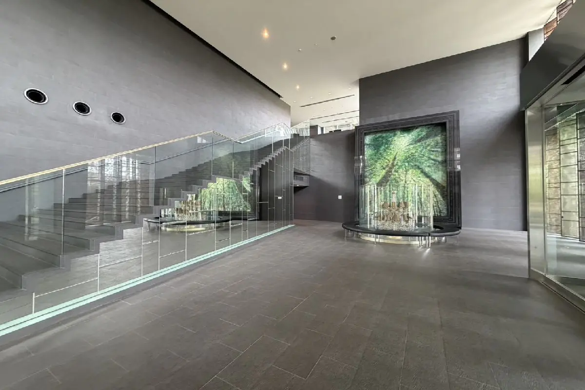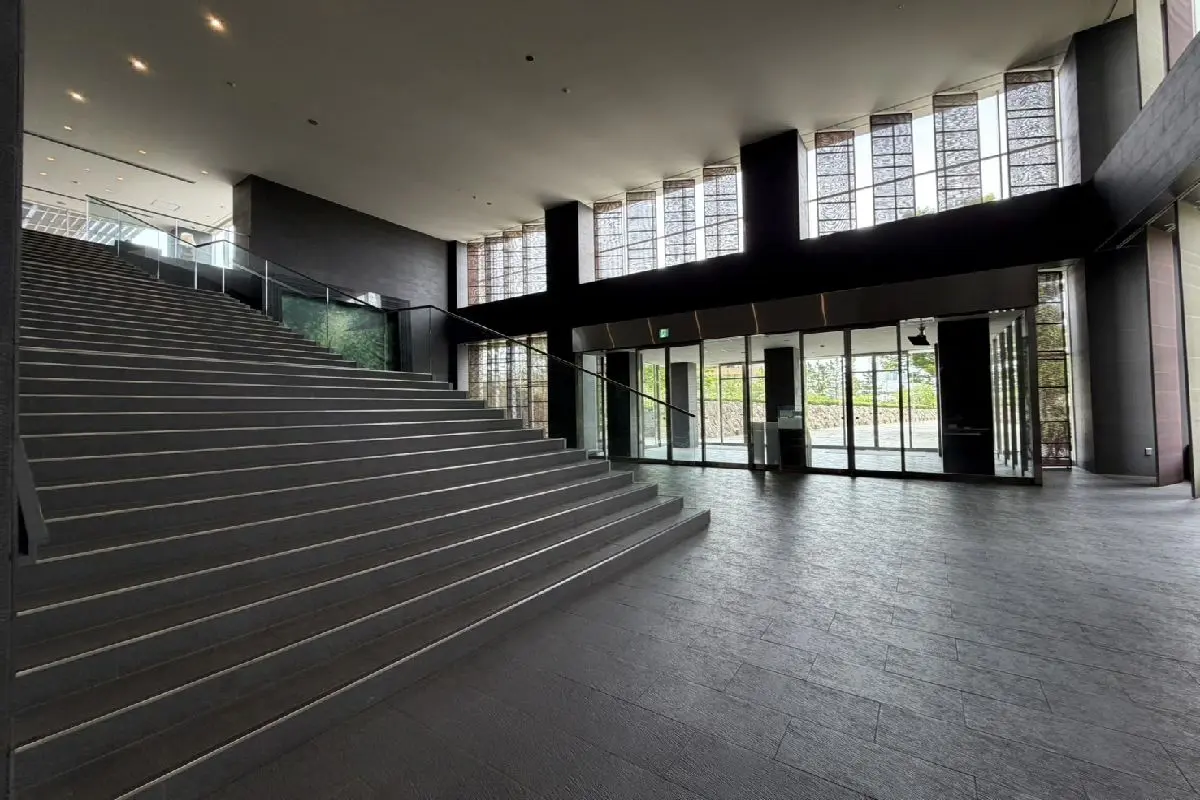 壮大なセンターコートや正面に広がるさくらの森を望める屋外空間