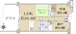 7階建6階部分の物件ですが、上階に住戸がないルーフバルコニー付きの角住戸です。