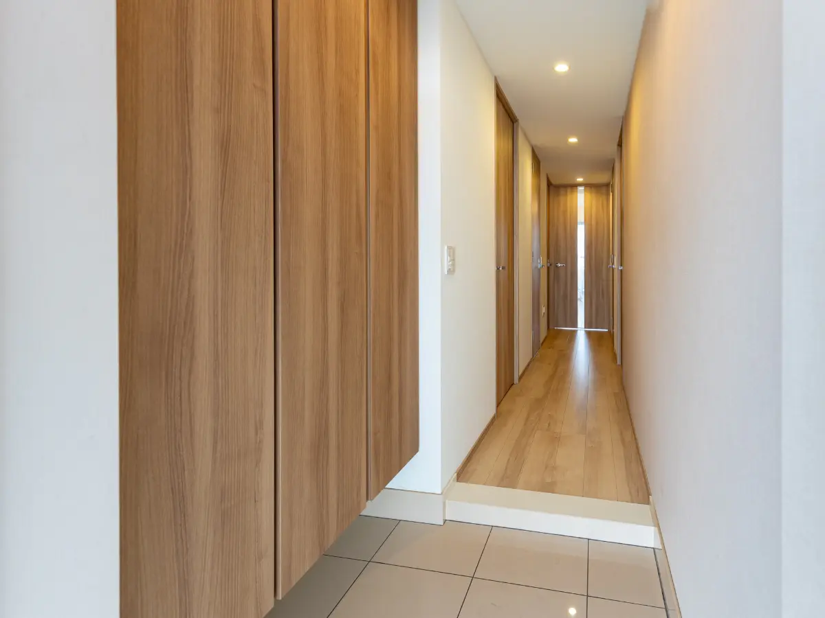 約6.8帖の洋室にはウォークインクローゼットが、約5.0帖の洋室にはクローゼットが備わっております。約6.8帖と約3.3帖の納戸を結ぶウォークスルークロゼットがあり、収納量ある空間です。