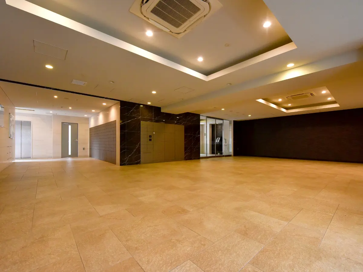 自然な風合いを伝える天然石や、上質な素材感のタイルを用いてデザインしたエントランスホールには、歓談の場となるラウンジコーナーがございます。