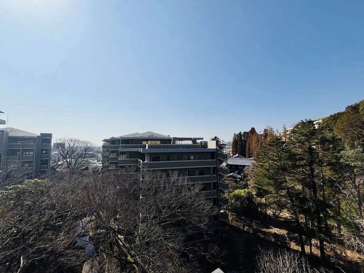 5階建5階部分に位置している本物件は、バルコニー前面に遮蔽物がなく、抜け感のあるパノラマビューは開放的です。