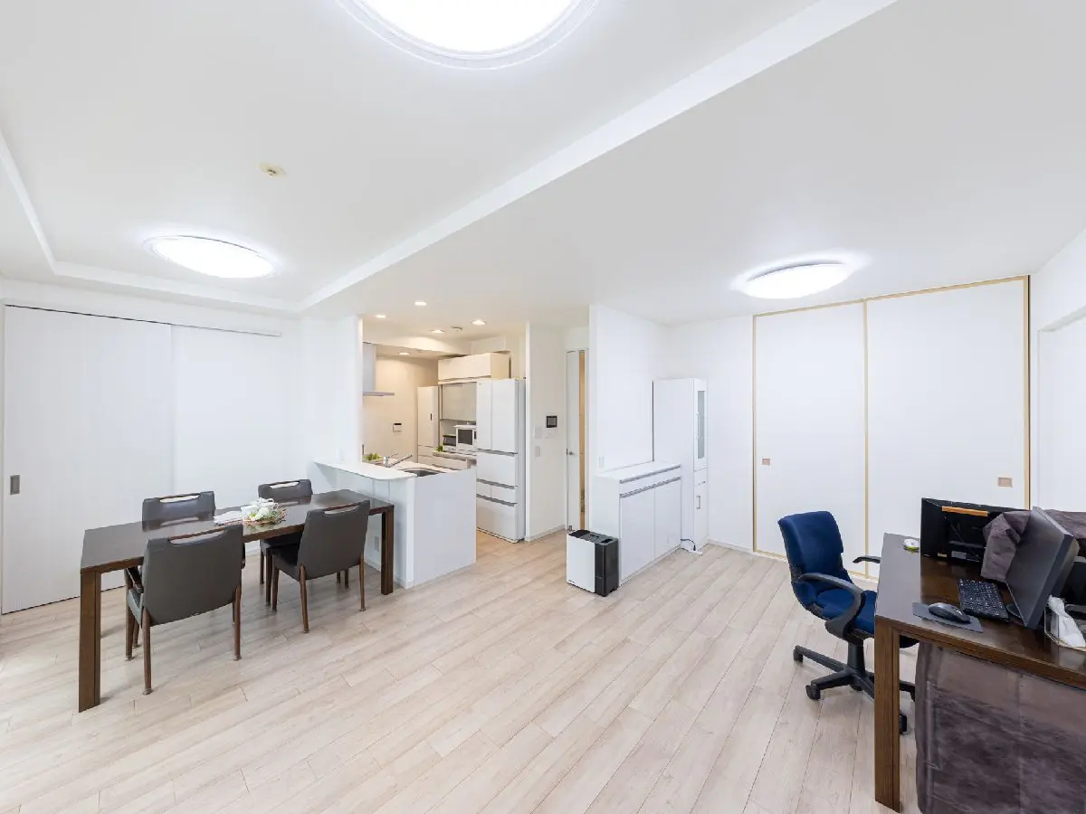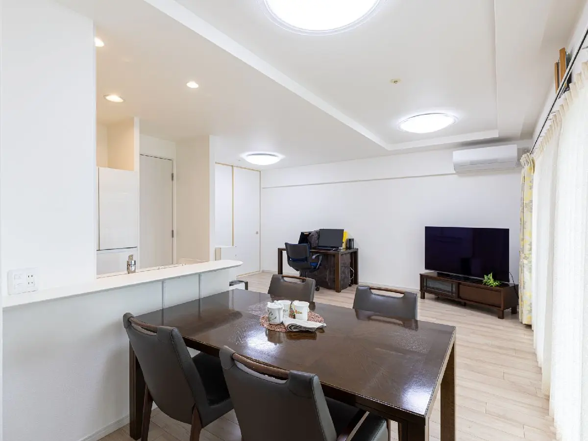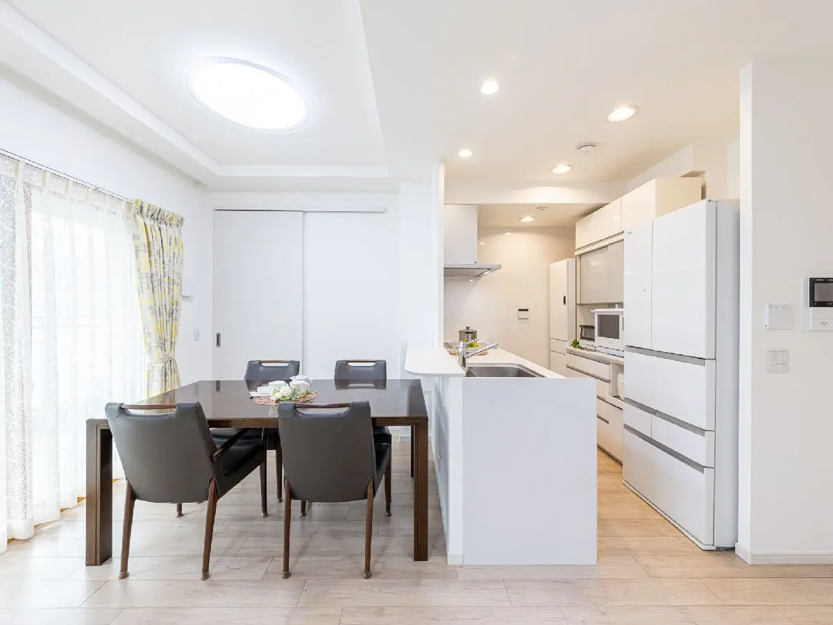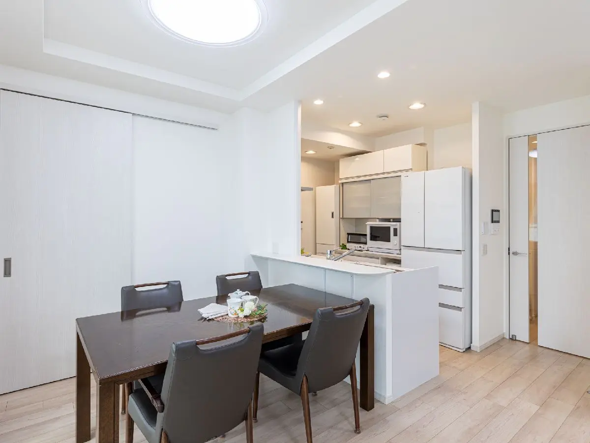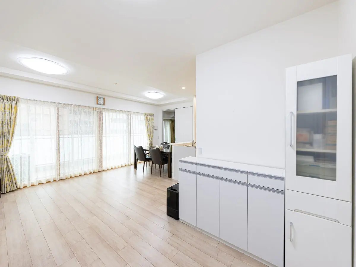 LDKはバルコニーの南面に面しており、明るい住空間を提供します。リビングとダイニングには床暖房が設置されております。