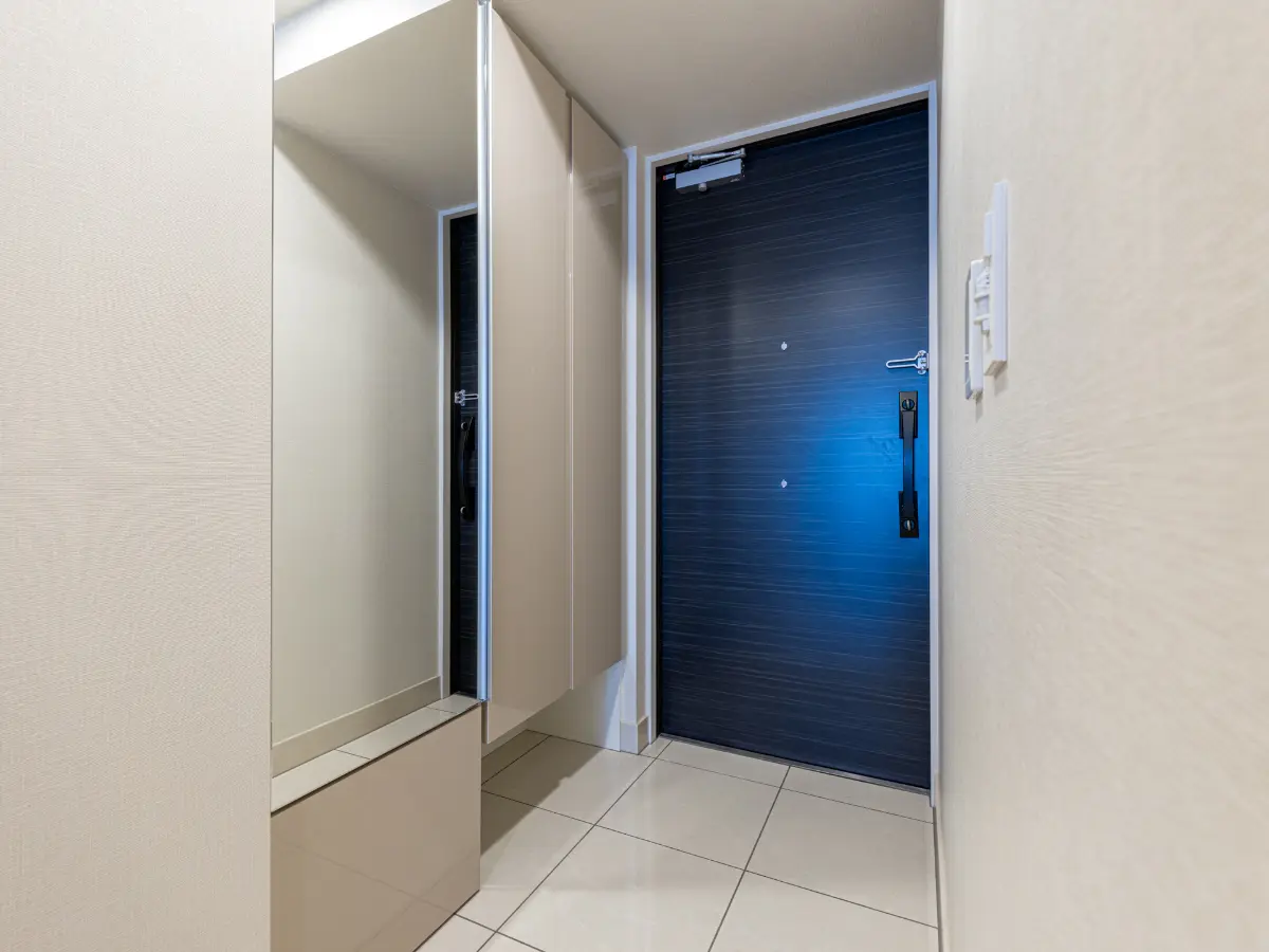 エントランスアプローチを抜けた先には2層吹き抜けのエントランスホールが待ち受け、ホテルライクな迎賓空間に仕立てています。