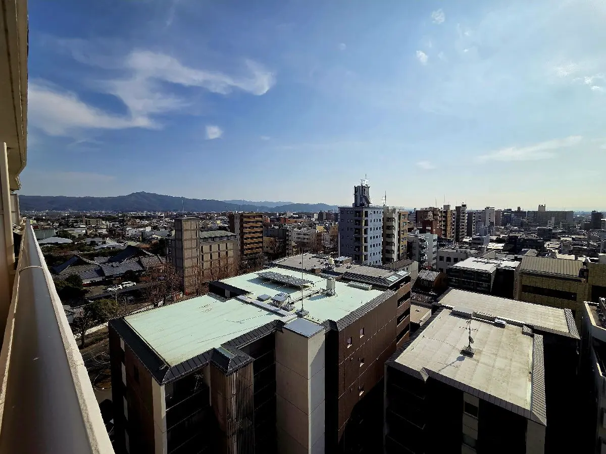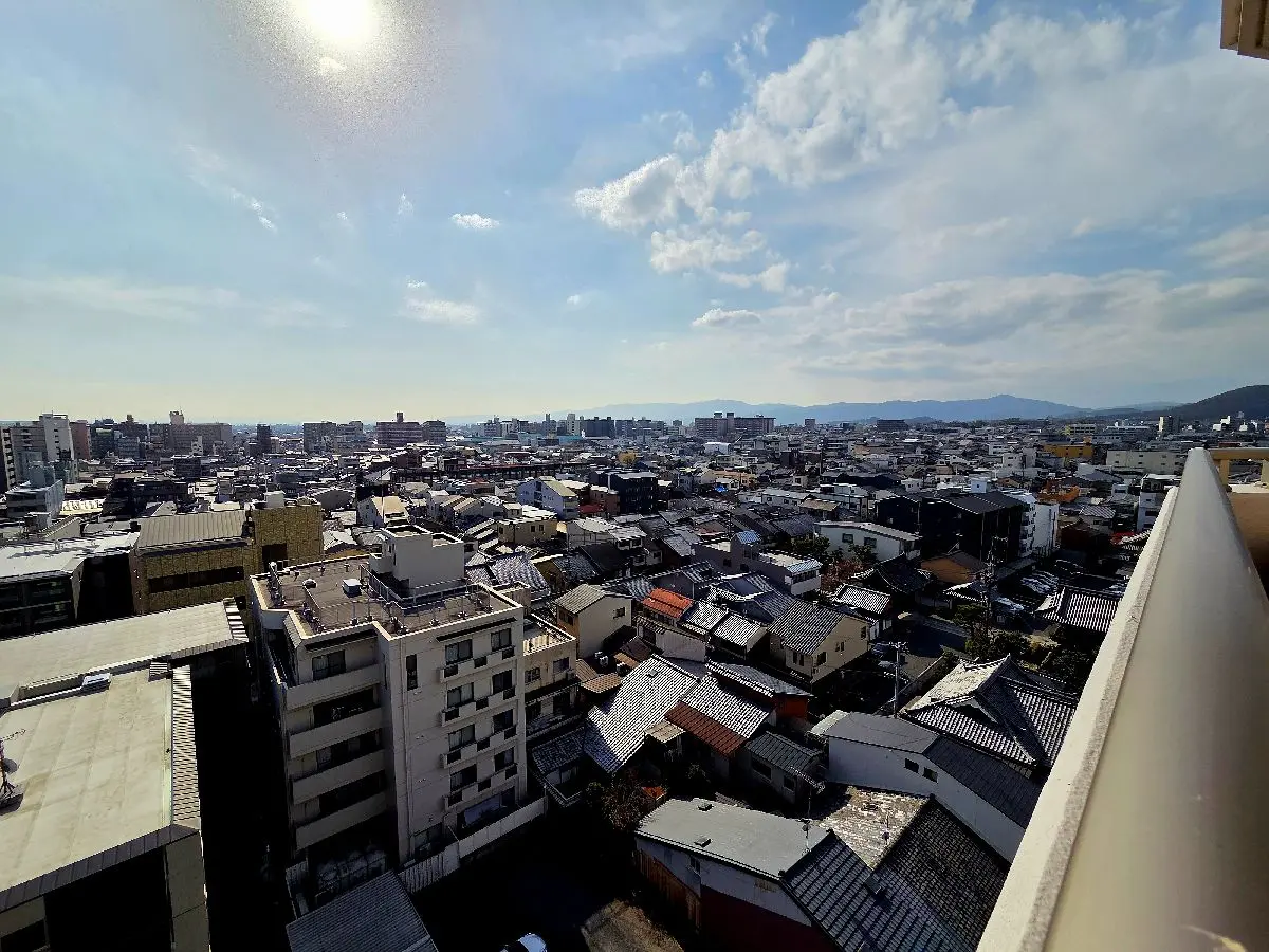 京都らしい歴史と落ち着きを色濃く残す「堀川紫明」エリアに佇む本物件は、最上階・南西角住戸となっており、一番の魅力は、開放感あふれる眺望です。