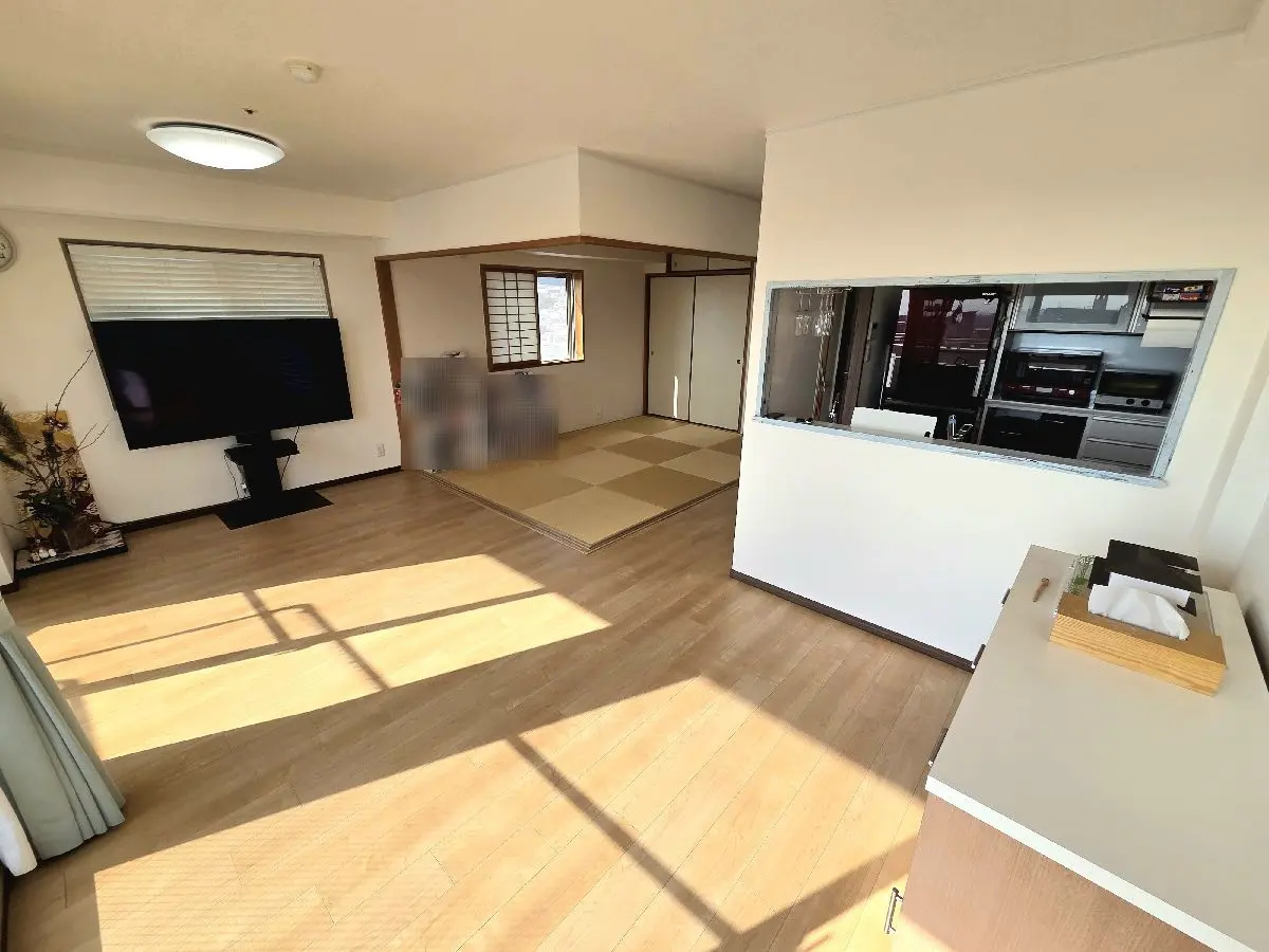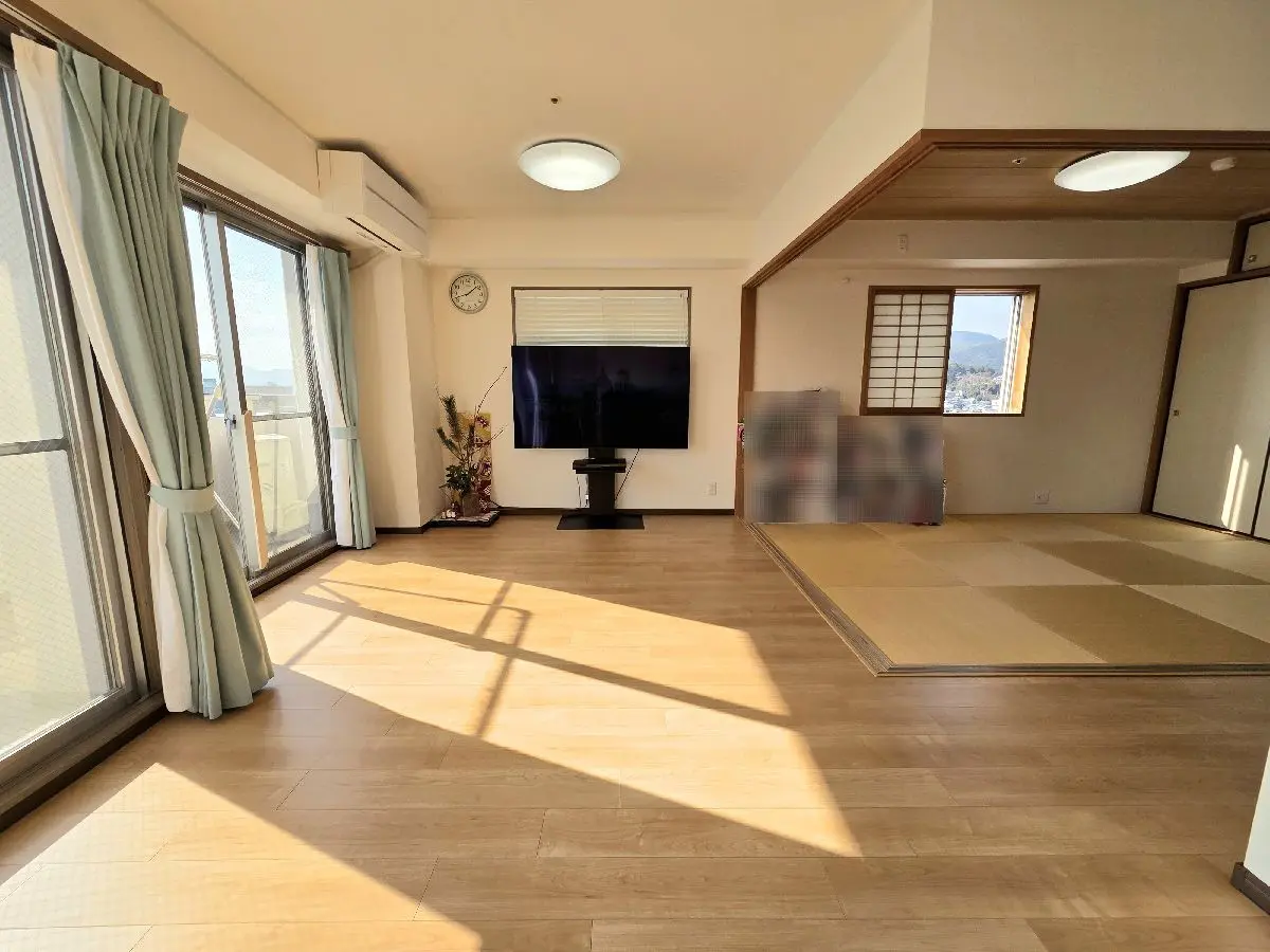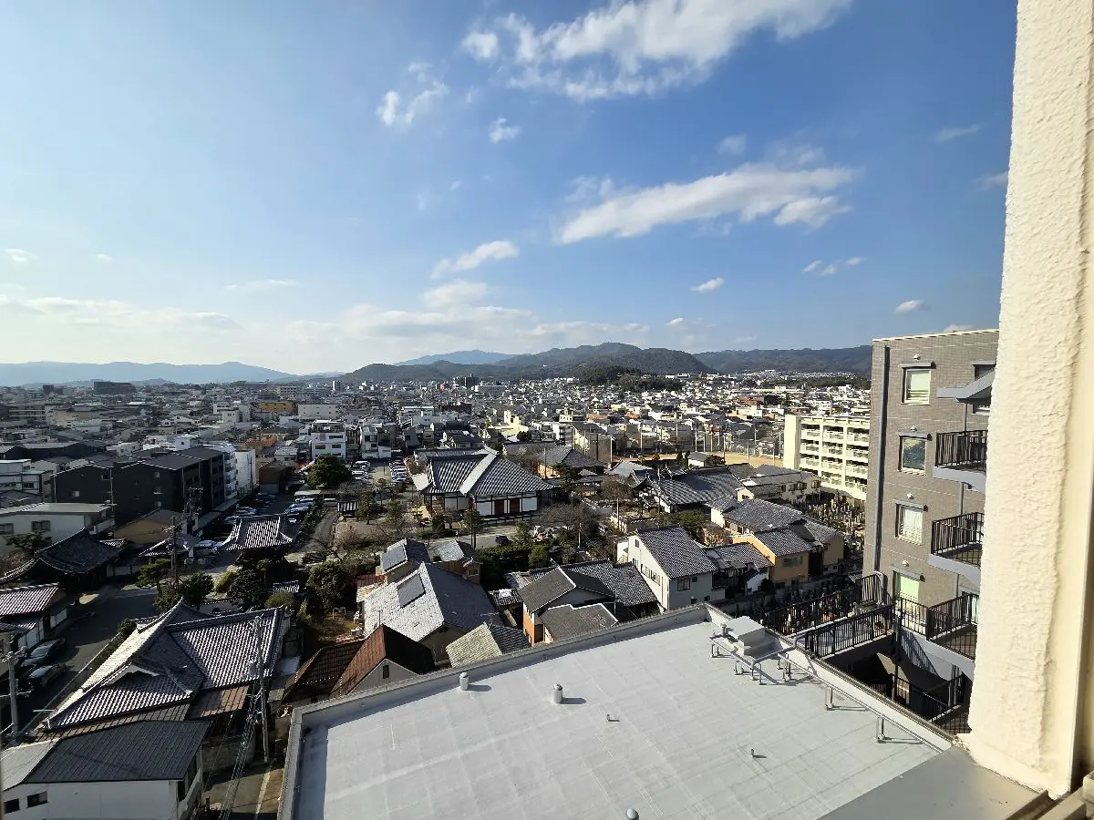 南西向きのバルコニーからは、晴れた日には東山から嵐山までを一望でき、朝から夕方にかけて移ろう光とともに、京都の四季を身近に感じられる住空間となっています。