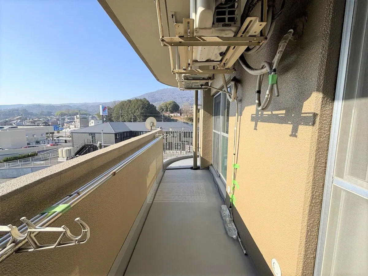南向き、西向きの2面に大きくバルコニーがとられており、角住戸にあたるため、日当たり、通風共に良好な造りとなっております。