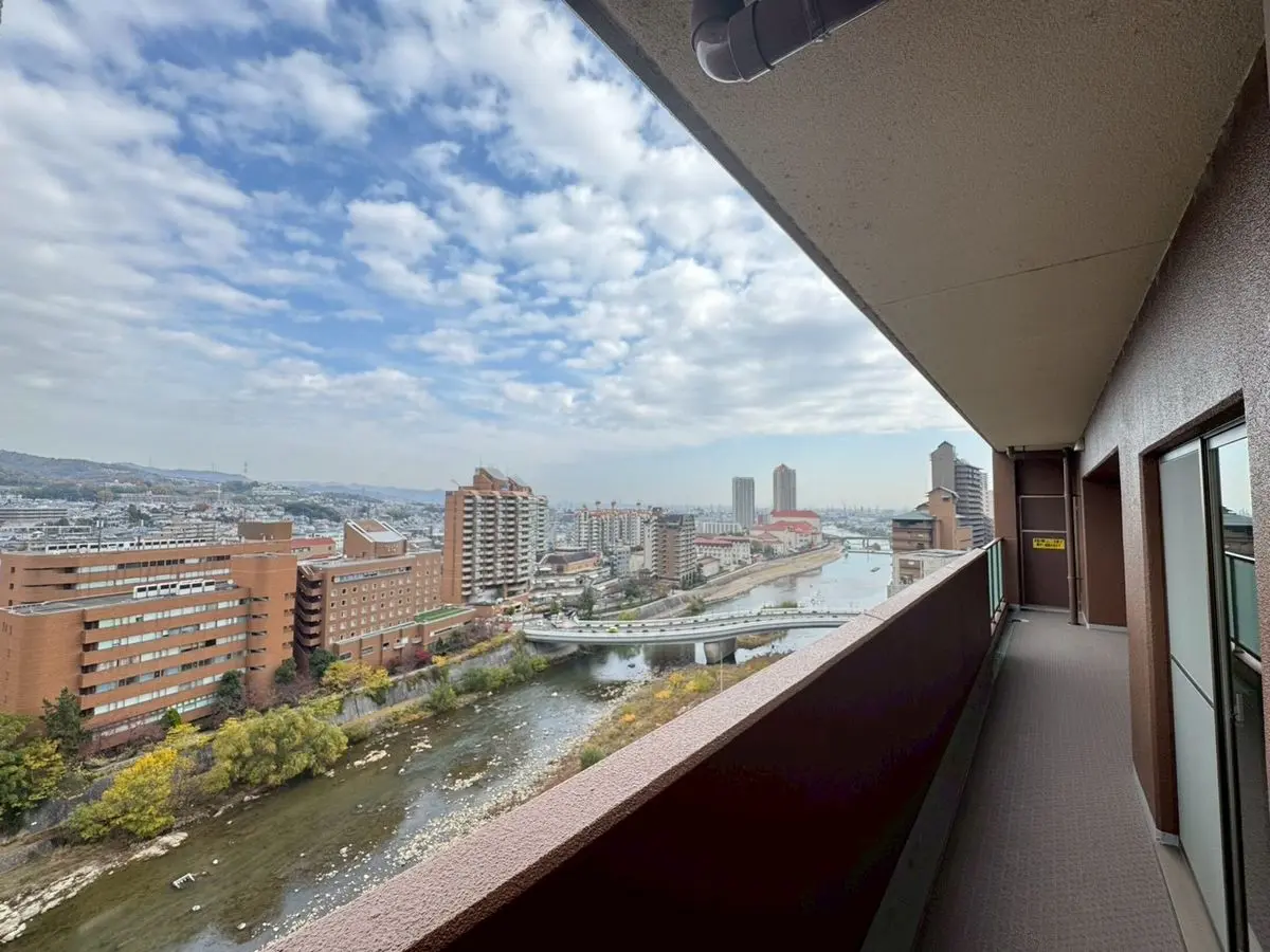 12階建の鉄筋コンクリート造、お部屋は12階部分。最上階につき上階にはロフトと55.25uのルーフバルコニーが有り、武庫川の眺望を満喫できます。