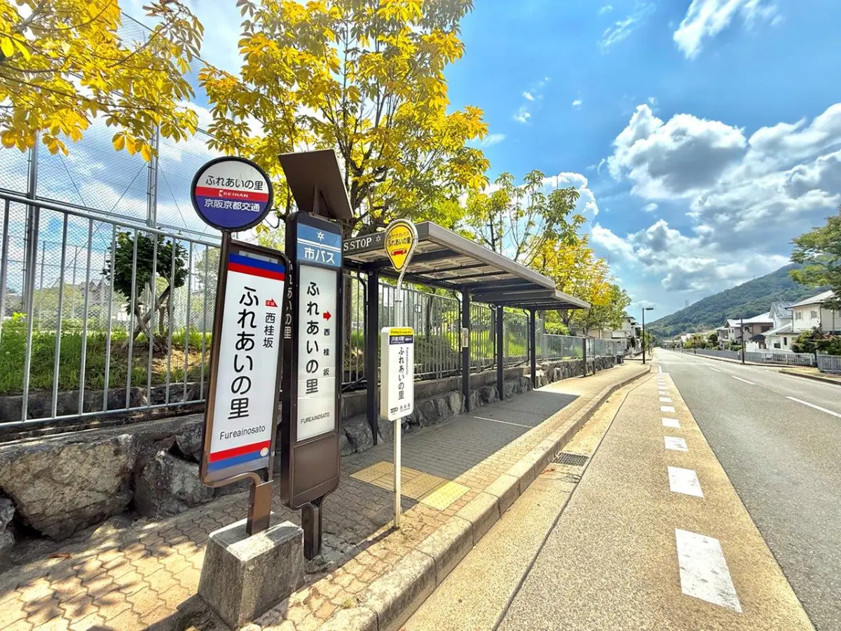 本物件は京都市西京区大枝北沓掛町一丁目に位置するマンションで、バス停が徒歩2分の場所にあります。