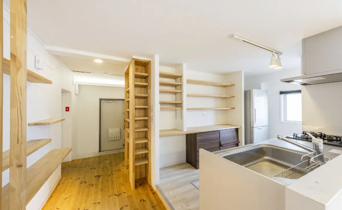 全居室建具新調、造作棚新設、床下収納新設。