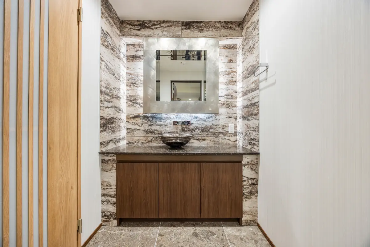 トイレ、洗面台を2か所設置したゆとりの設計で、格式ある祇園の地に相応しいラグジュアリーな住空間です。