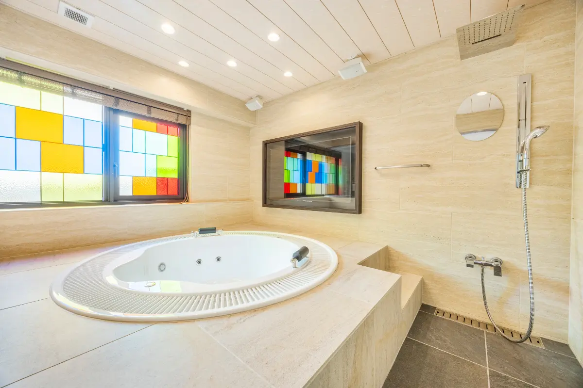 室内にはジャグジーやサウナを備え、都心にいながら上質な寛ぎの時間を実現。