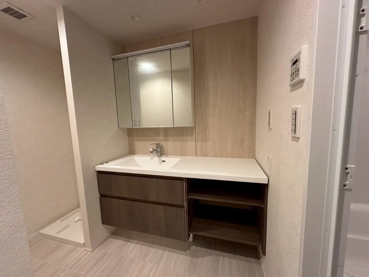 ・洗面化粧台、洗濯用防水パン、建具、給湯器等