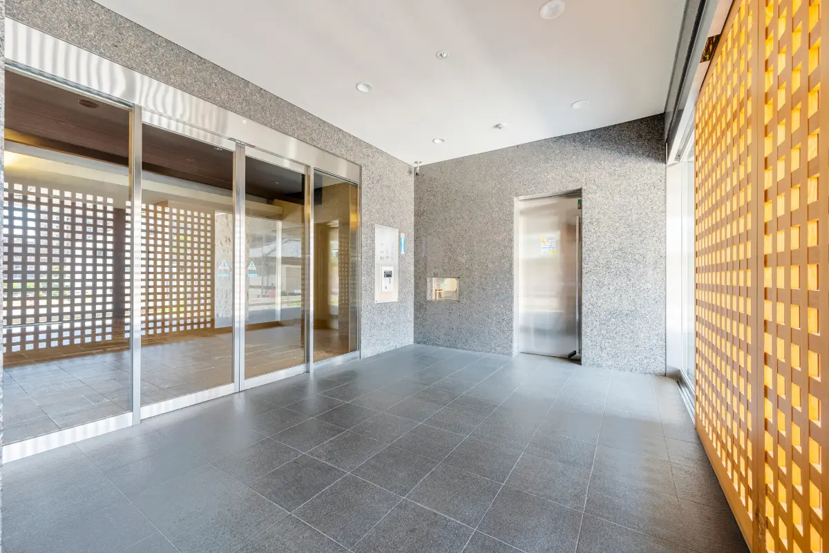 建物は吹き抜けのある開放的なエントランスが印象的。共用部も充実しており、シャッターゲート付駐車場。さらに1住戸につき1台分の駐車場が確保されています。大切なペットとも暮らせる(※規約による定めあり)のも嬉しいポイント。