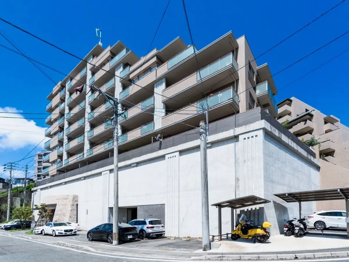 高台に佇む、ひときわ目を惹く重厚感あるレジデンス。