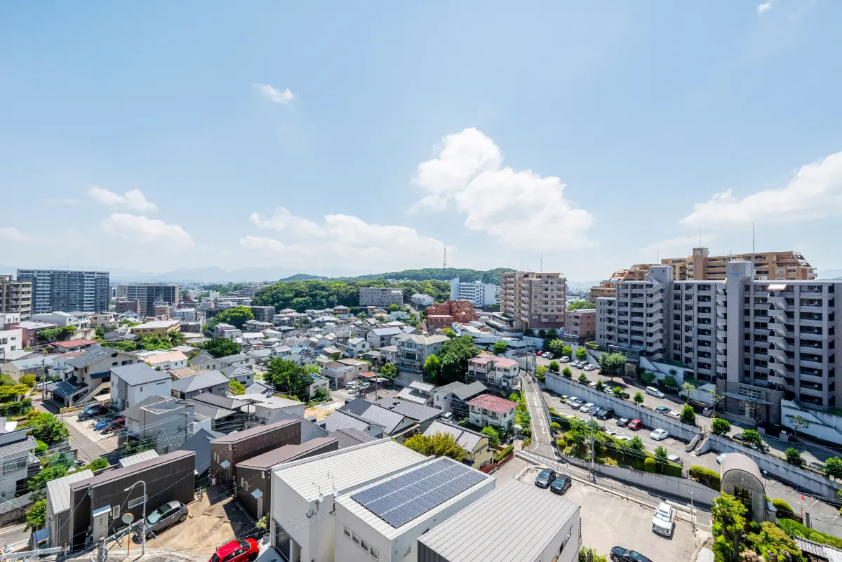 9階建ての7階部分・南東向きという恵まれたポジションからは、視界を遮る建物のない、開放感あふれるパノラマビューをお楽しみいただけます。朝日が差し込む明るい住空間は、まさに“特等席”。