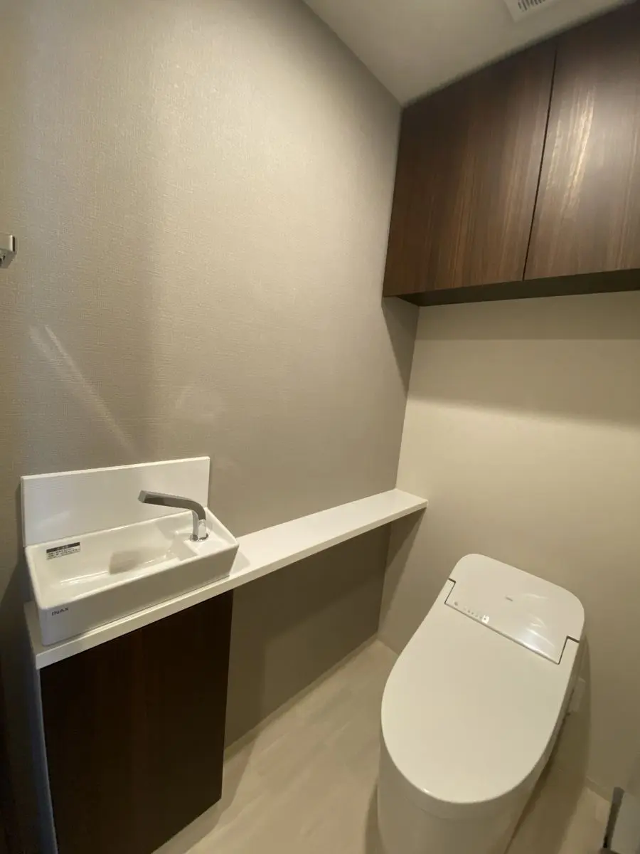 ◇トイレにオート開閉ウォシュレット・自動水栓付手洗いカウンター付き