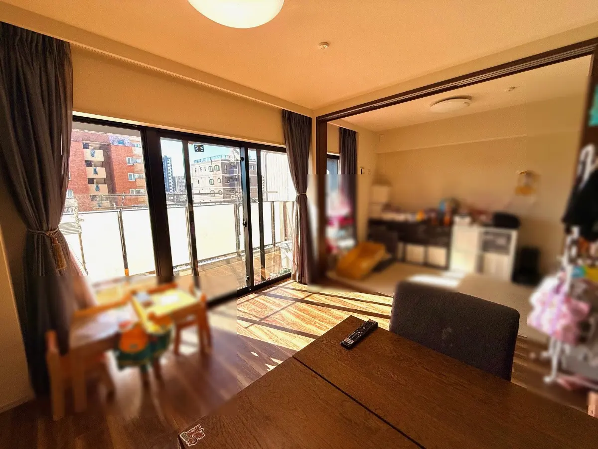 室内につきましては、間取り3LDKで南側の洋室(約4.5帖)はリビングとの間仕切仕様となっているため、普段は開けてリビングとの一体利用も可能です。