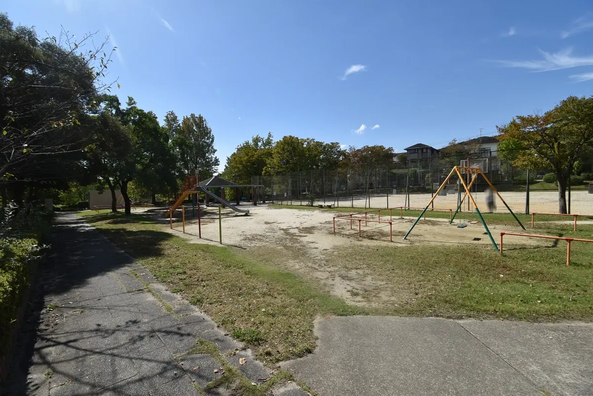 マンション西側エントランス目の前にある植園公園は北側は球技用広場や遊具広場、南側は池がございます。