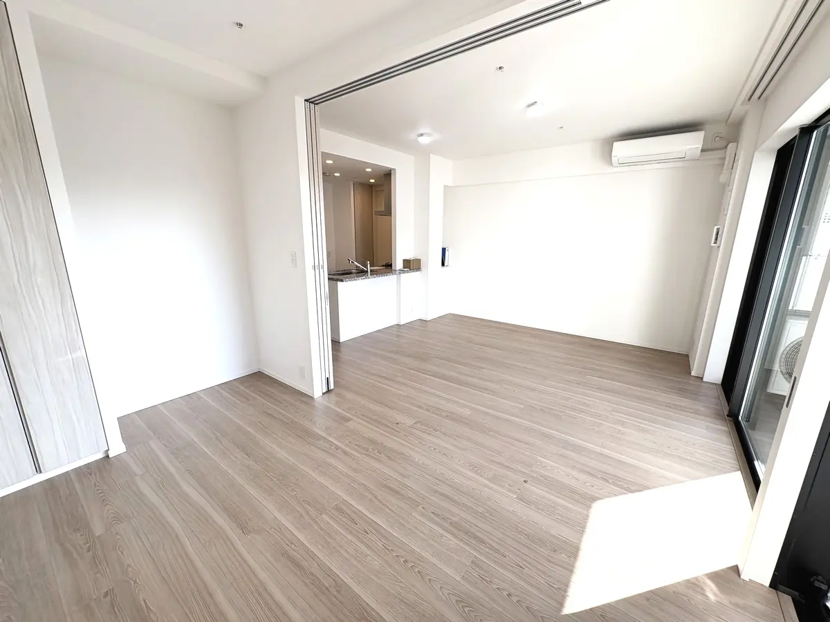 約5.2帖の洋室は可動間仕切となっており開放時にはLDKと一体利用することができるため、